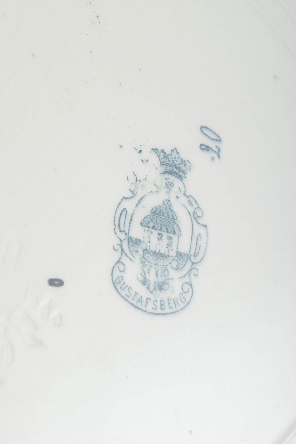 Gustavsberg, grundlagt i 1825 nær Stockholm, var en af Sveriges førende porcelæns- og fajancefabrikker gennem 1800- og 1900-tallet. Serien “Wexiö” blev produceret omkring år 1900 og afspejler tidens interesse for naturmotiver og dekorative overførselstryk i afdæmpede farver.