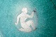 Stentøj med turkis glasur og indlagte sølvdekorationer, udvendigt dekoreret med håndindridset kvindefigur og stiliseret grenmotiv. Svungne dobbelthanke i klassisk art deco-stil.