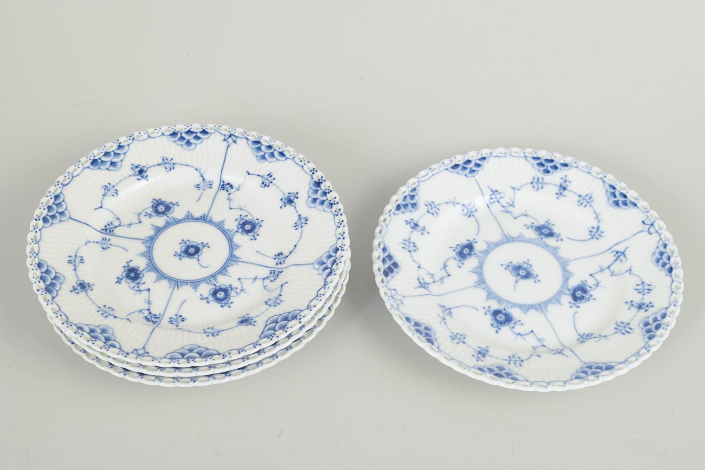 Blue Fluted full Lace, set of four plates, 18 cm, 1980s.
