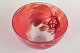 Skål i klart og rødtonet kunstglas med indsmeltede fiskemotiver og matteret bund, signeret Hoff.