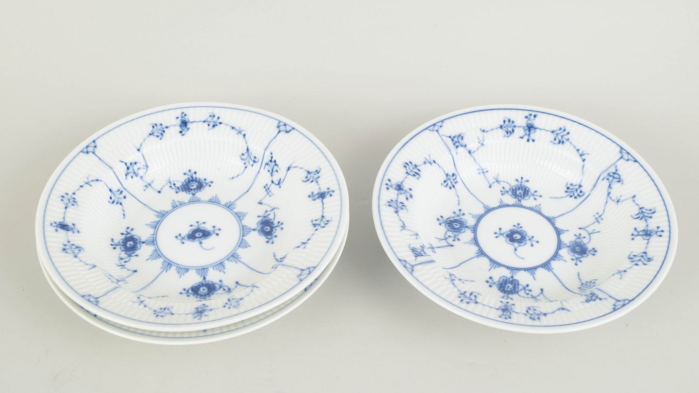 Royal Copenhagen Blue Fluted Plain soup plates, set of three.