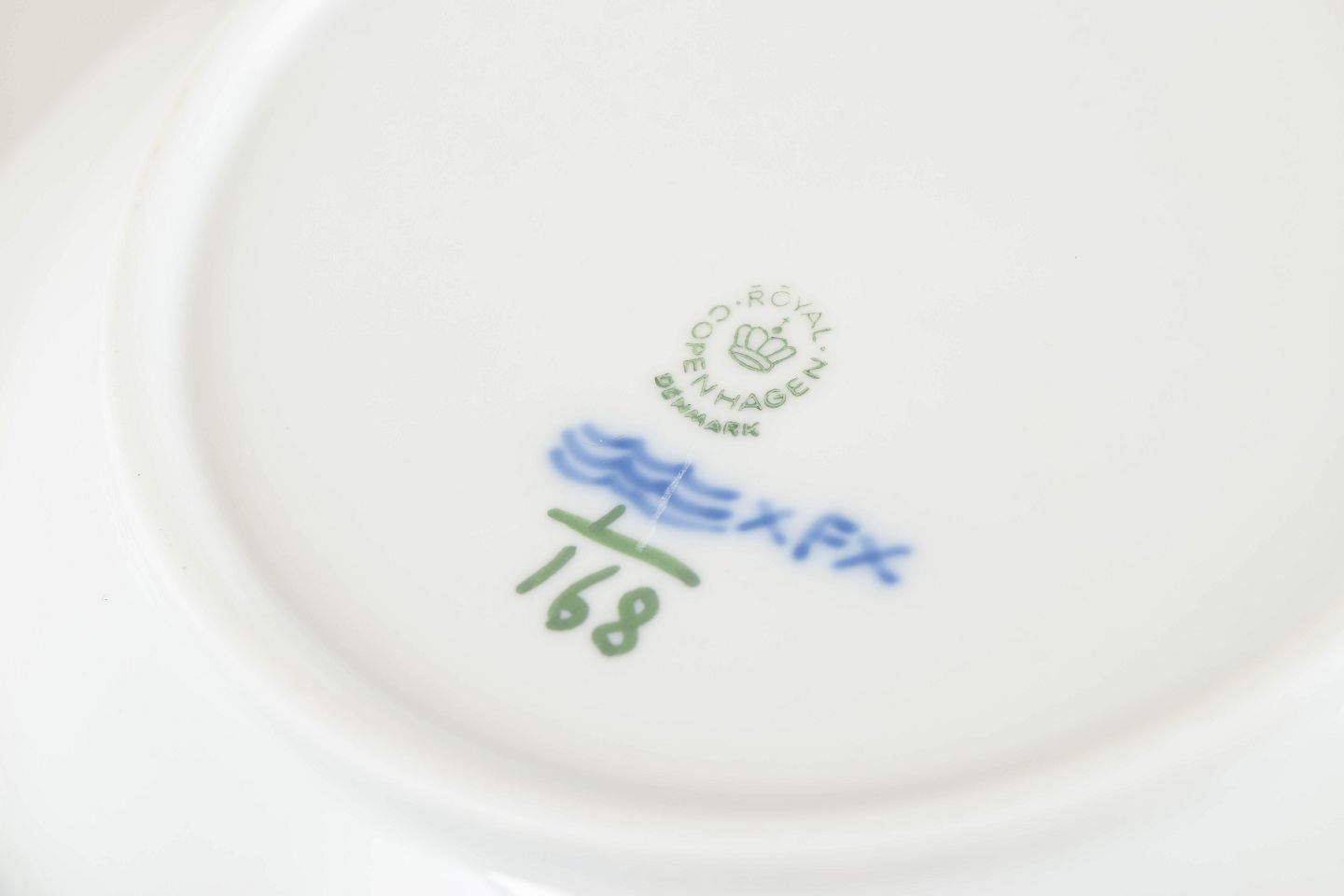 Royal Copenhagen was founded in 1775 in Copenhagen under the patronage of Queen Dowager Juliane Marie. The factory is internationally renowned for its hand-painted underglaze decoration, including the Blue Fluted Plain pattern, introduced in 1775 and still produced using traditional craftsmanship, with each piece individually decorated by skilled painters.