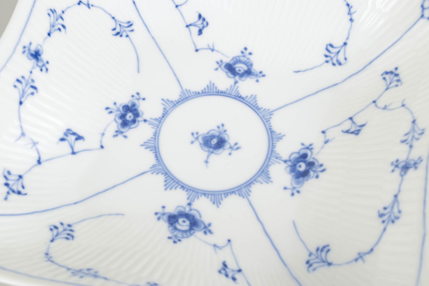Royal Copenhagen Musselmalet Riflet, firkantet skål.