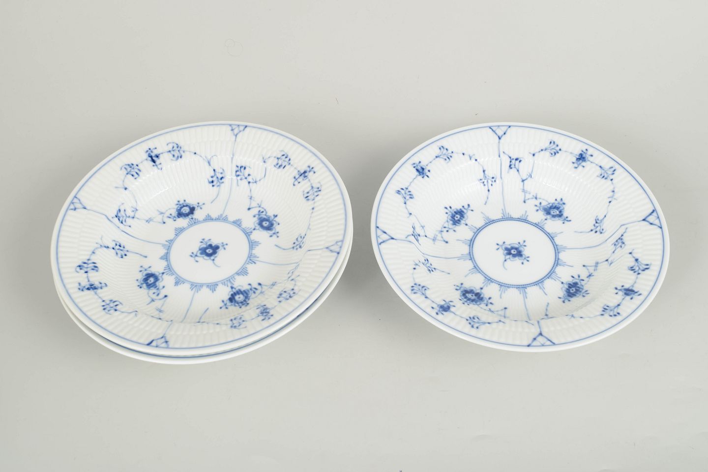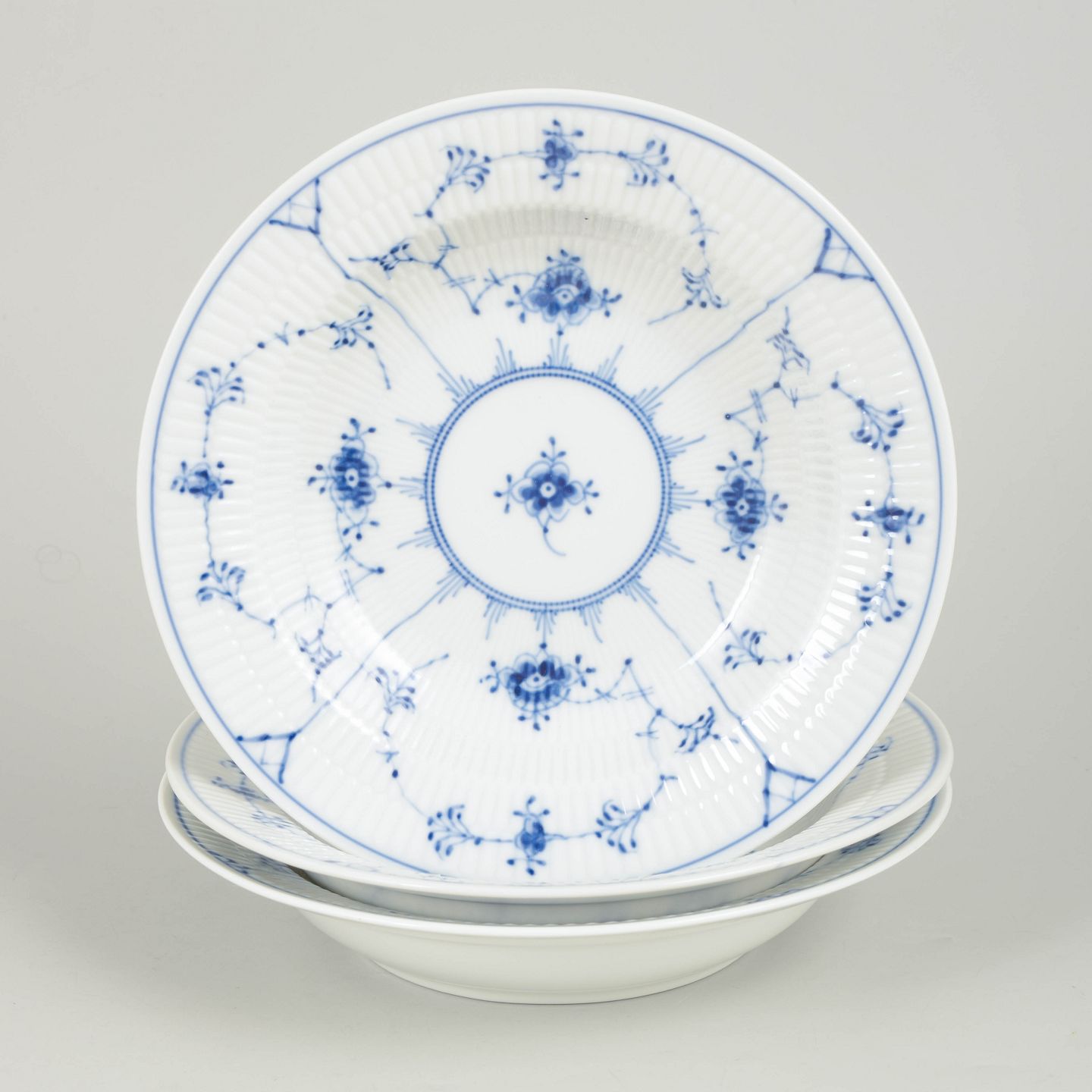 Royal Copenhagen Musselmalet Riflet, sæt af tre pasta-tallerkener.