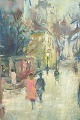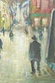Poul Kastrup (1920–1987) was a Danish painter born in Aarhus. He is known primarily for figurative compositions and urban landscapes inspired by European city life, particularly Paris. His work often reflects an impressionistic approach with soft colour transitions and expressive brushwork, emphasising atmosphere, light, and movement within the scene. Kastrup exhibited in Denmark during the mid-20th century, and his works appear in both private collections and regional exhibitions.