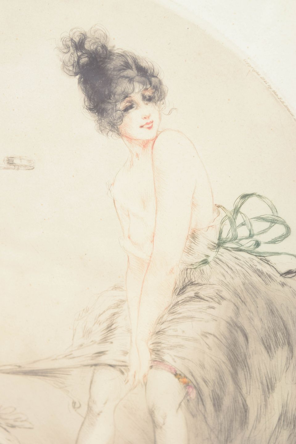 Louis Icart (1888–1950) var en fransk grafiker og maler født i Toulouse. Han flyttede til Paris i 1907, hvor han studerede tegning, maleri og grafiske teknikker. Icart blev især kendt i 1920’erne og 1930’erne for sine elegante og sensuelle skildringer af kvinder udført som farveetsninger. Hans stil forener inspiration fra rokokomaleriet hos kunstnere som Watteau, Boucher og Fragonard med den dekorative elegance fra Art Deco-perioden. Icart opnåede stor international popularitet, især i USA, og hans tryk regnes i dag blandt de mest karakteristiske grafiske værker fra mellemkrigstidens Paris.
