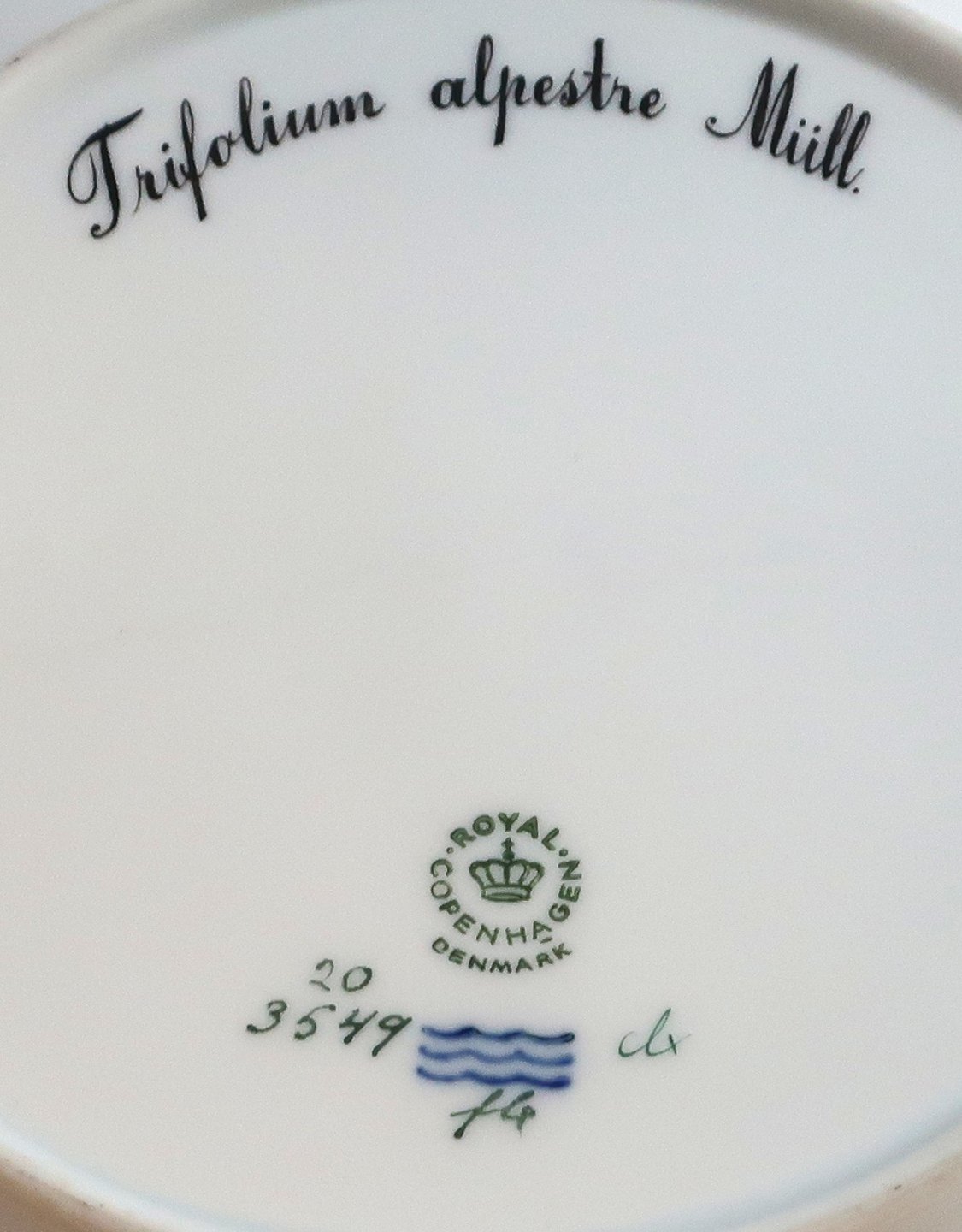 Royal Copenhagen Flora Danica. Dinner plate. Design # 3549. Diameter 25 cm. (1 quality). Trifolium alpestre Mill