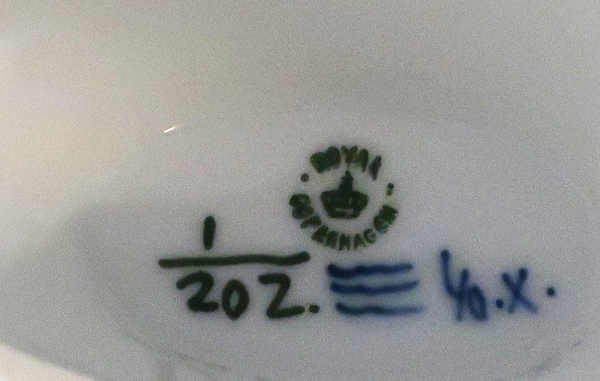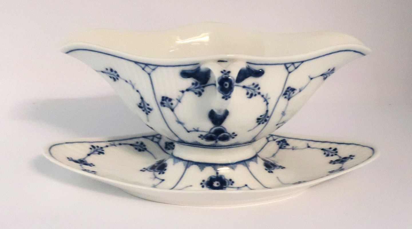 Royal Copenhagen. Blue fluted, plain. Sauce bowl. Model 202. Length 24.5 cm. (1 quality). Produced before 1923