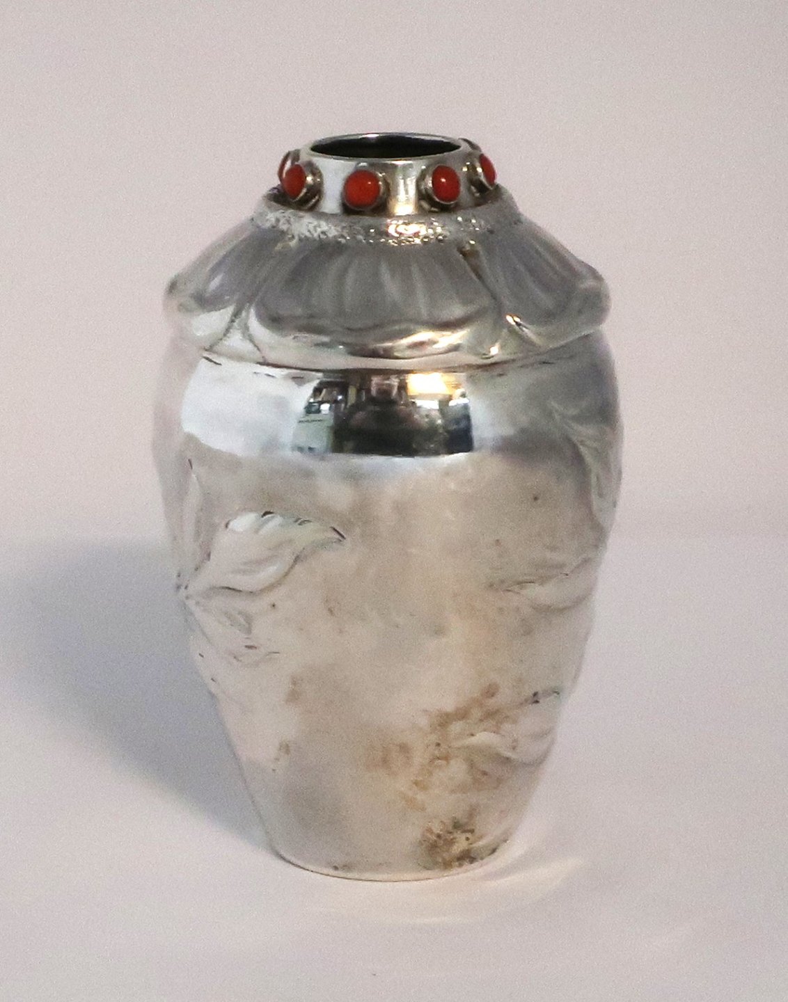 Knud Georg Jensen, København (KGI). Lille sølvvase med sten (830). Højde 10 cm. Produceret 1917.