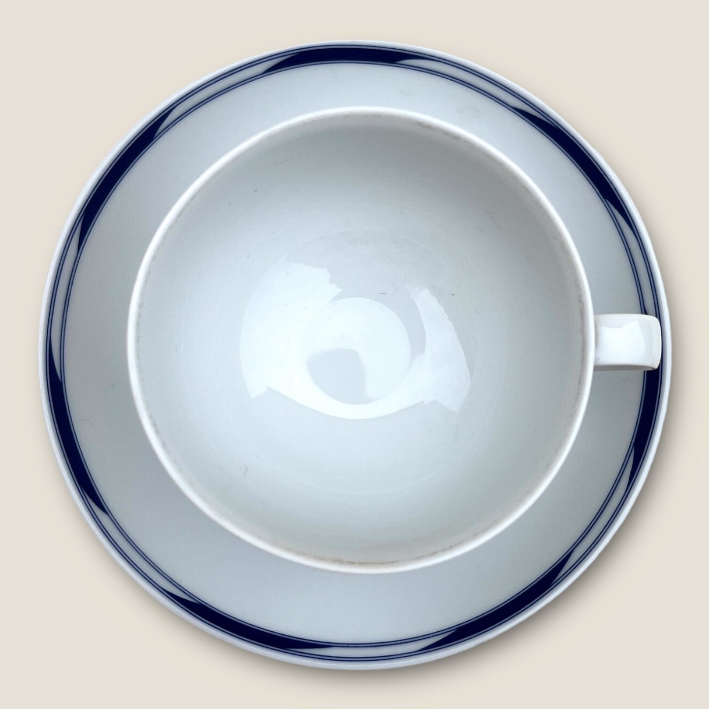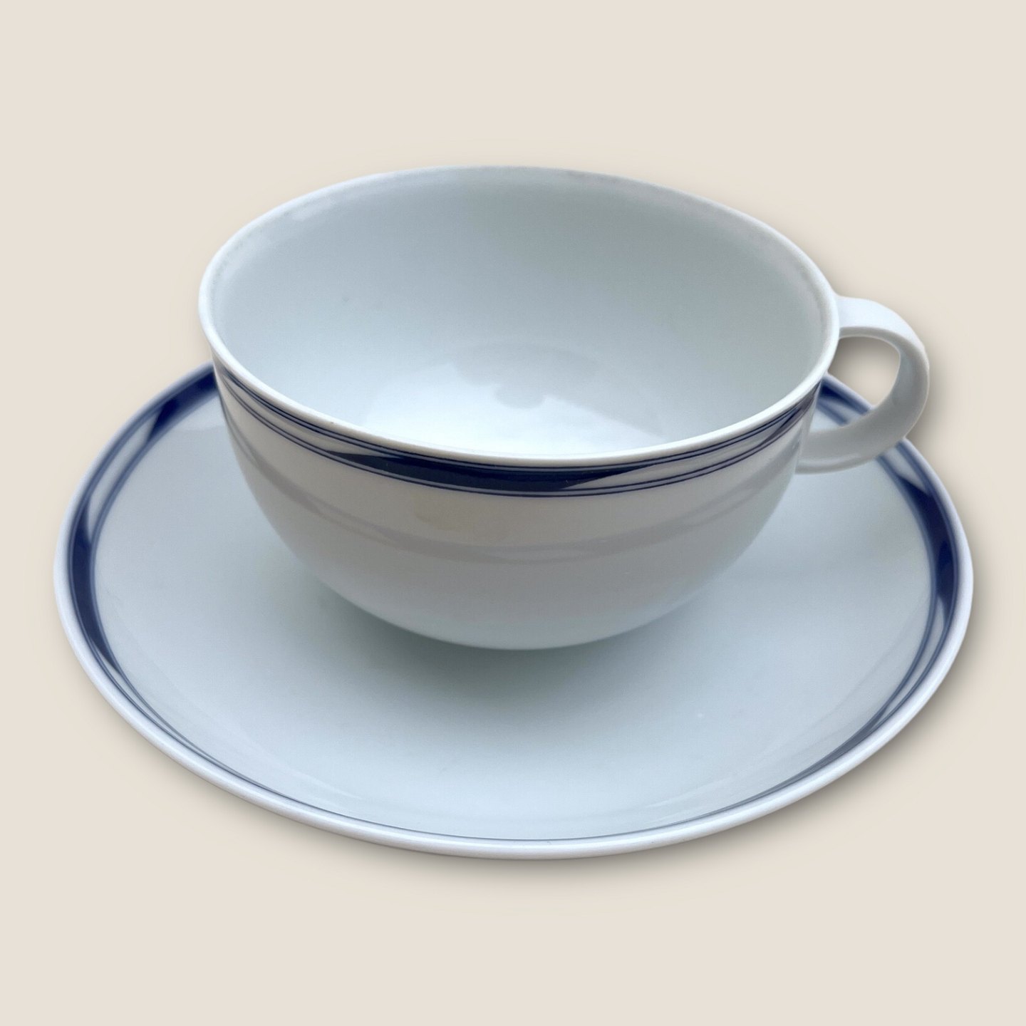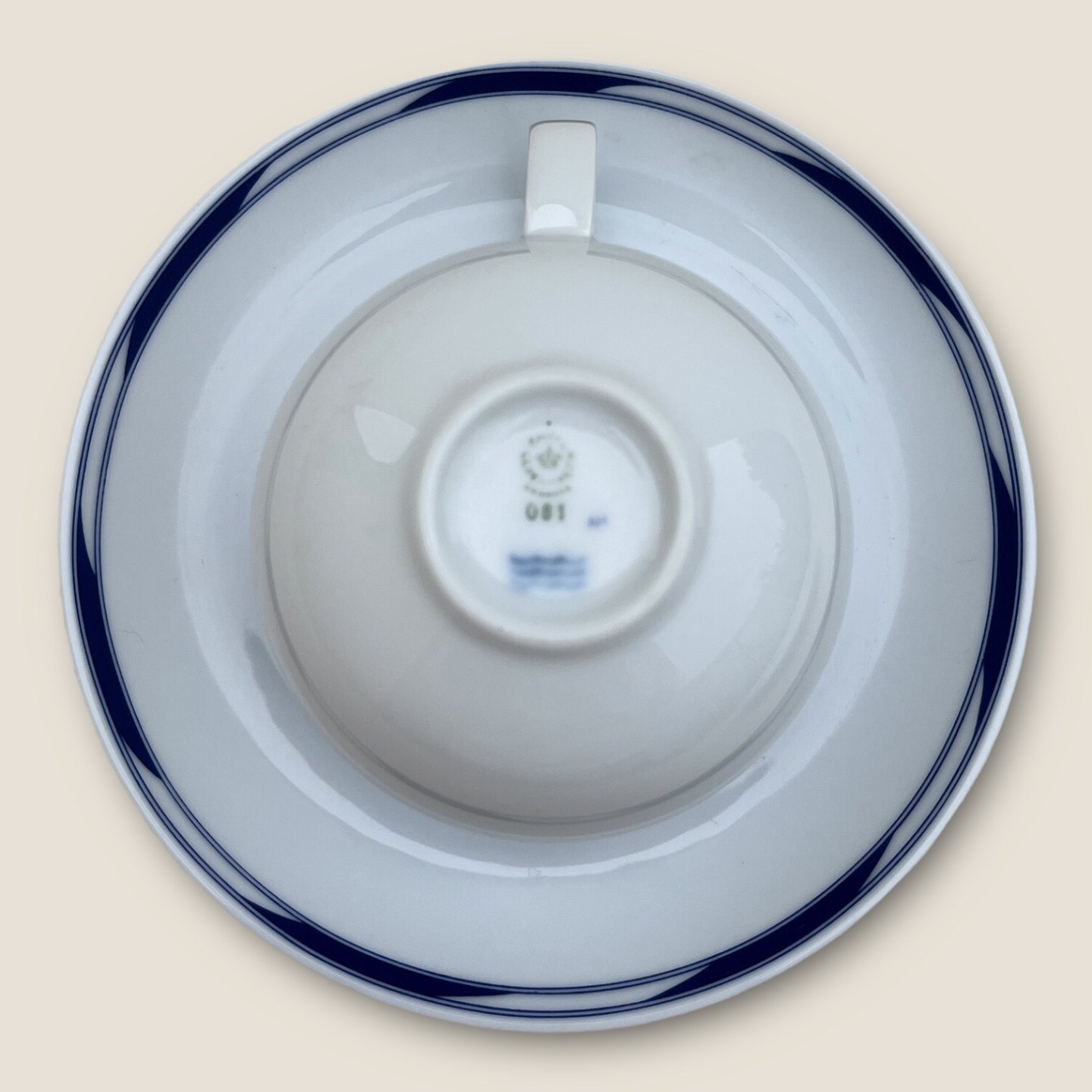Royal Copenhagen, Blue Sirius, Teacup trio set #081, teacup 9.5cm in diameter, Plate 18cm in diameter, Design Alev Siesbye *Perfect condition*