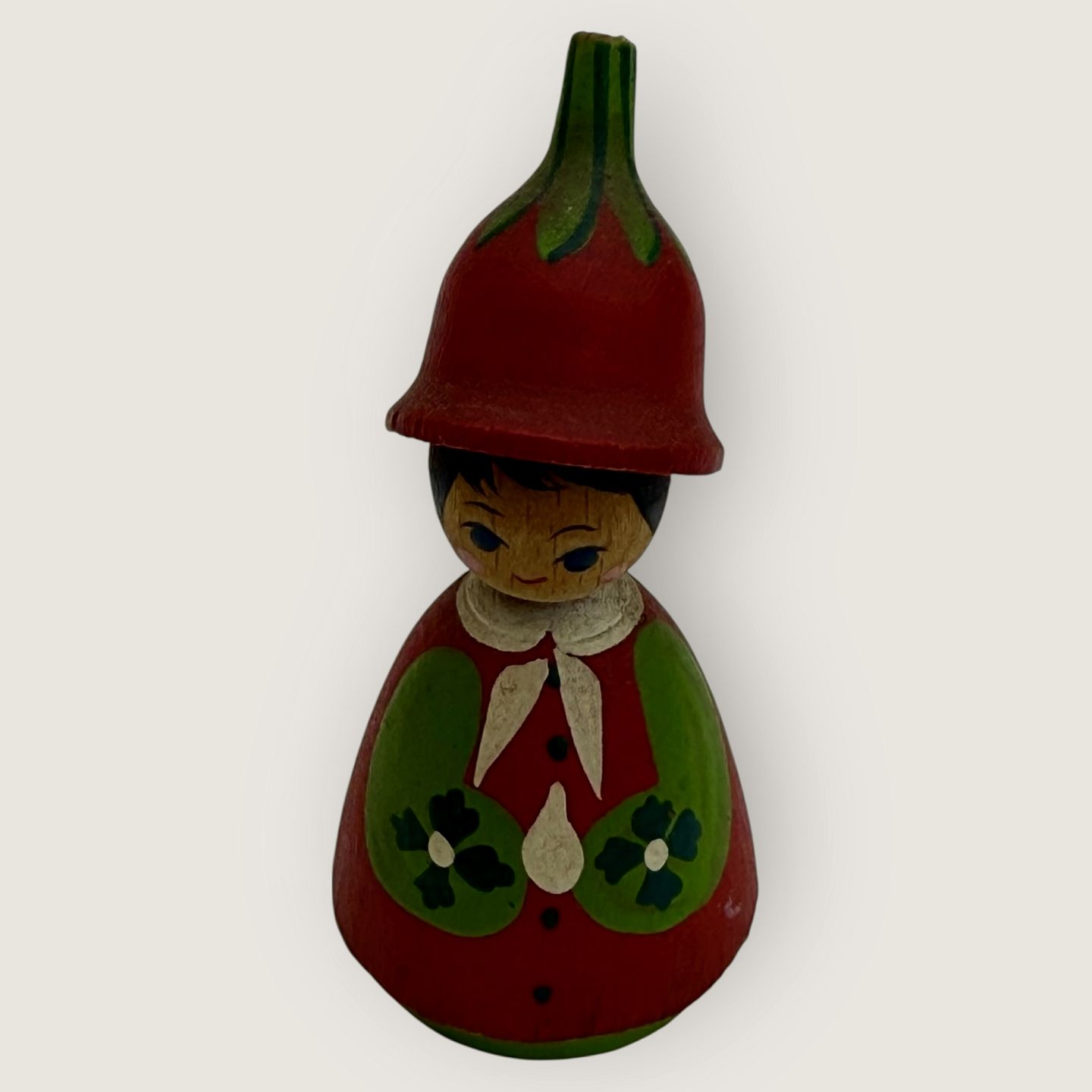 Eigenbrod Bogense, Wooden Flower Girl red, Easter decoration, 7.5cm high, 3.5cm in diameter *nice used condition*