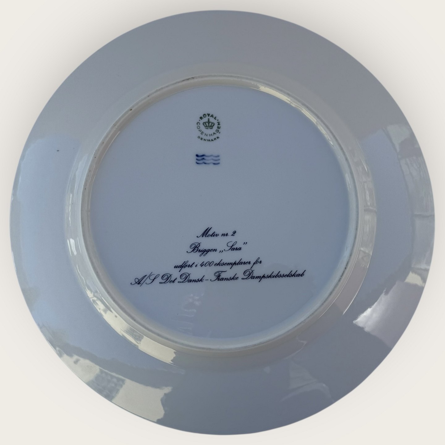 Royal Copenhagen, Motif 2, Briggen Sara, Made in 400 copies for A/S Det- Dansk-Franske Dampskibsselskab, 25cm in diameter, perfect condition