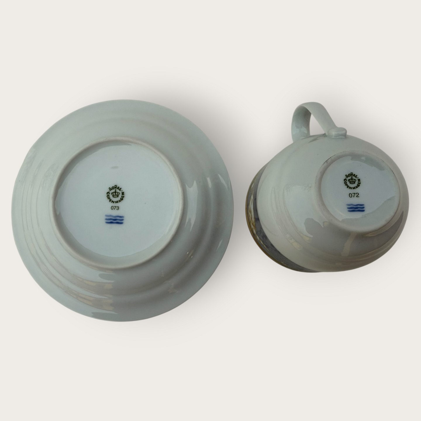 Royal Copenhagen, Grey Magnolia, coffee cup, #072 0g 073 (saucer) 1st grade, cup 8cm in diameter and 6cm high, saucer 14.5 cm in diameter, Design Flemming Eskildsen *perfect condition*