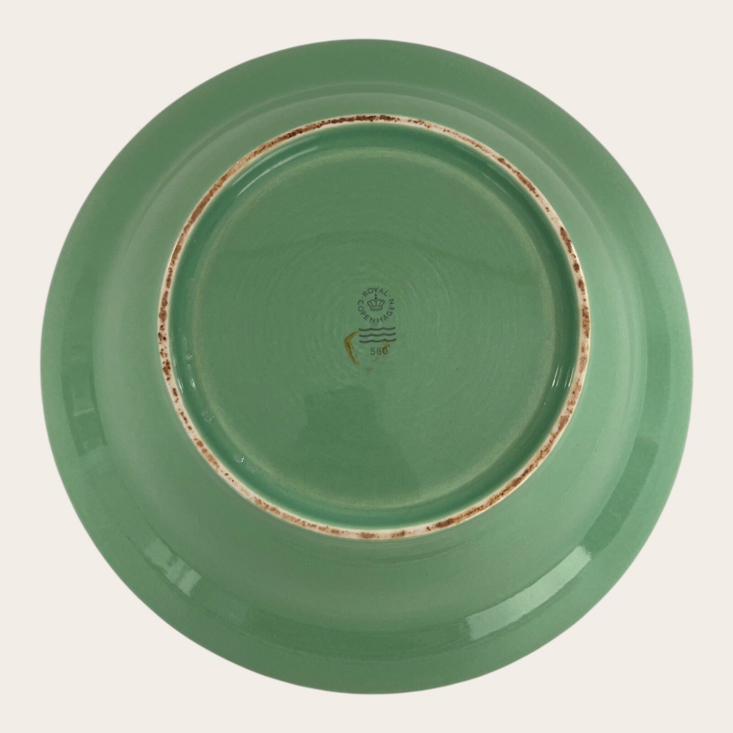 Royal Copenhagen, Ursula, Bowl, Green #580, 1st sorting, 24.5cm in diameter, 7.5cm high, Design Ursula Munch Petersen *With traces of use*