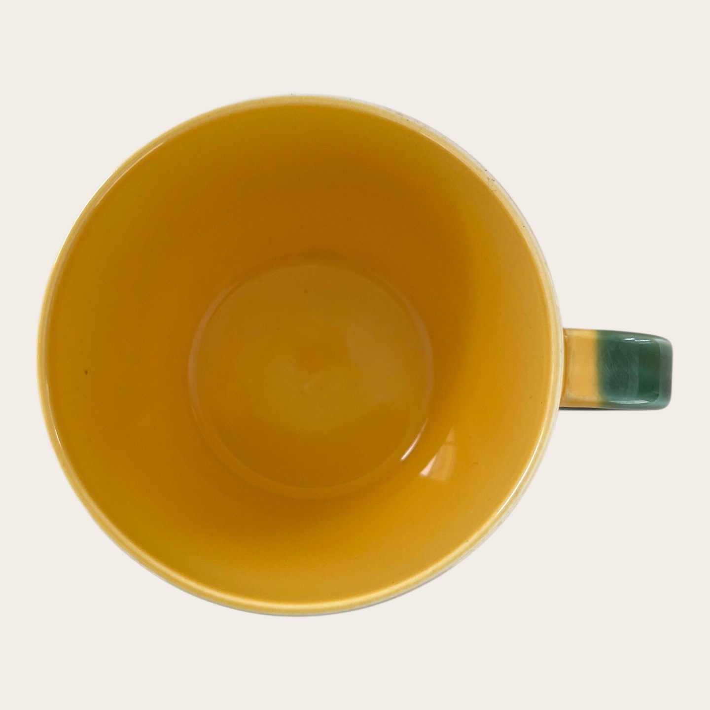 Royal Copenhagen, Aluminia, Ursula, Teacup, Yellow/Green #084, 1st sorting, 13cm wide, 7cm high, 9.5cm in diameter, Design Ursula Munch Petersen, 6 pcs. dark yellow, 4 pcs. slightly lighter yellow *Good condition*