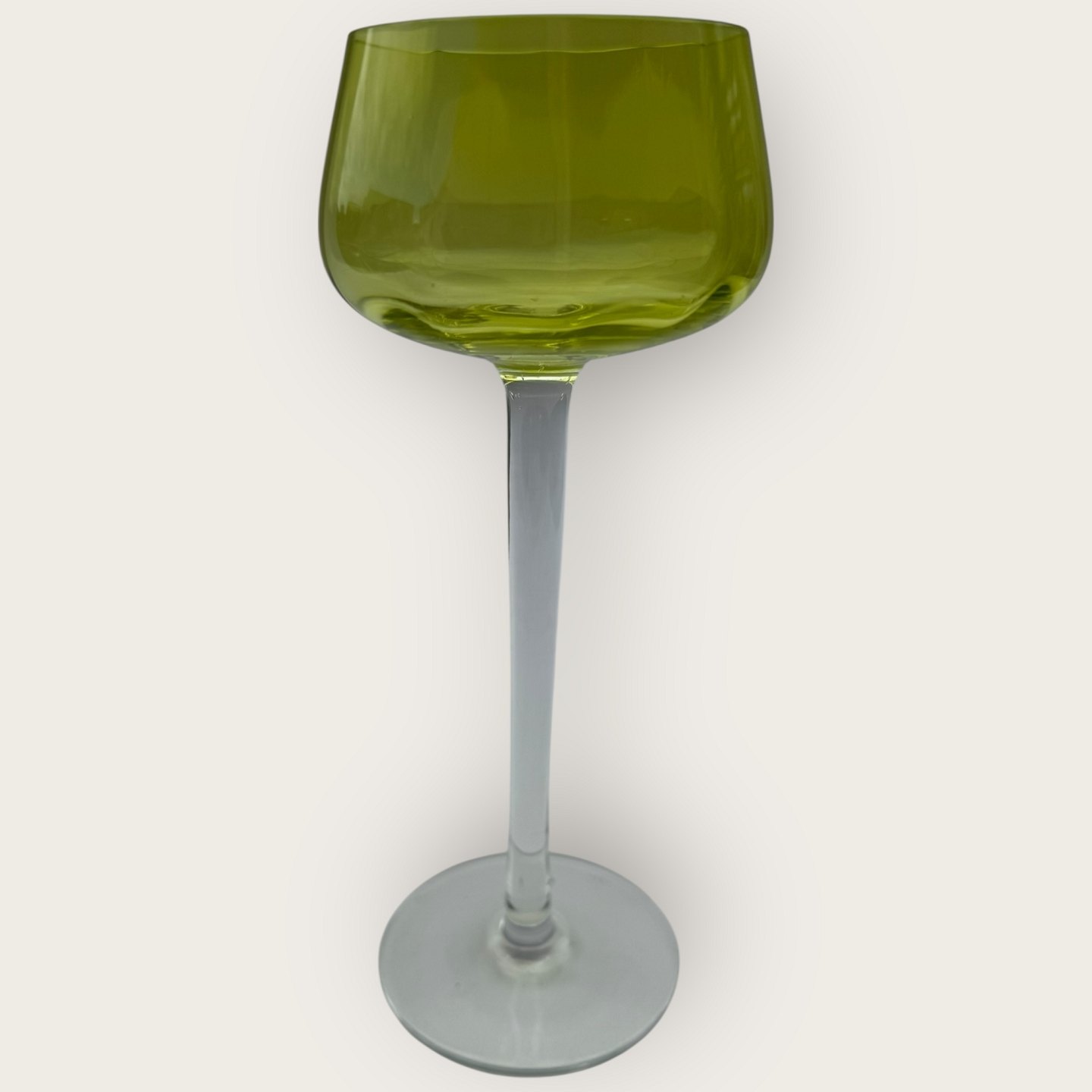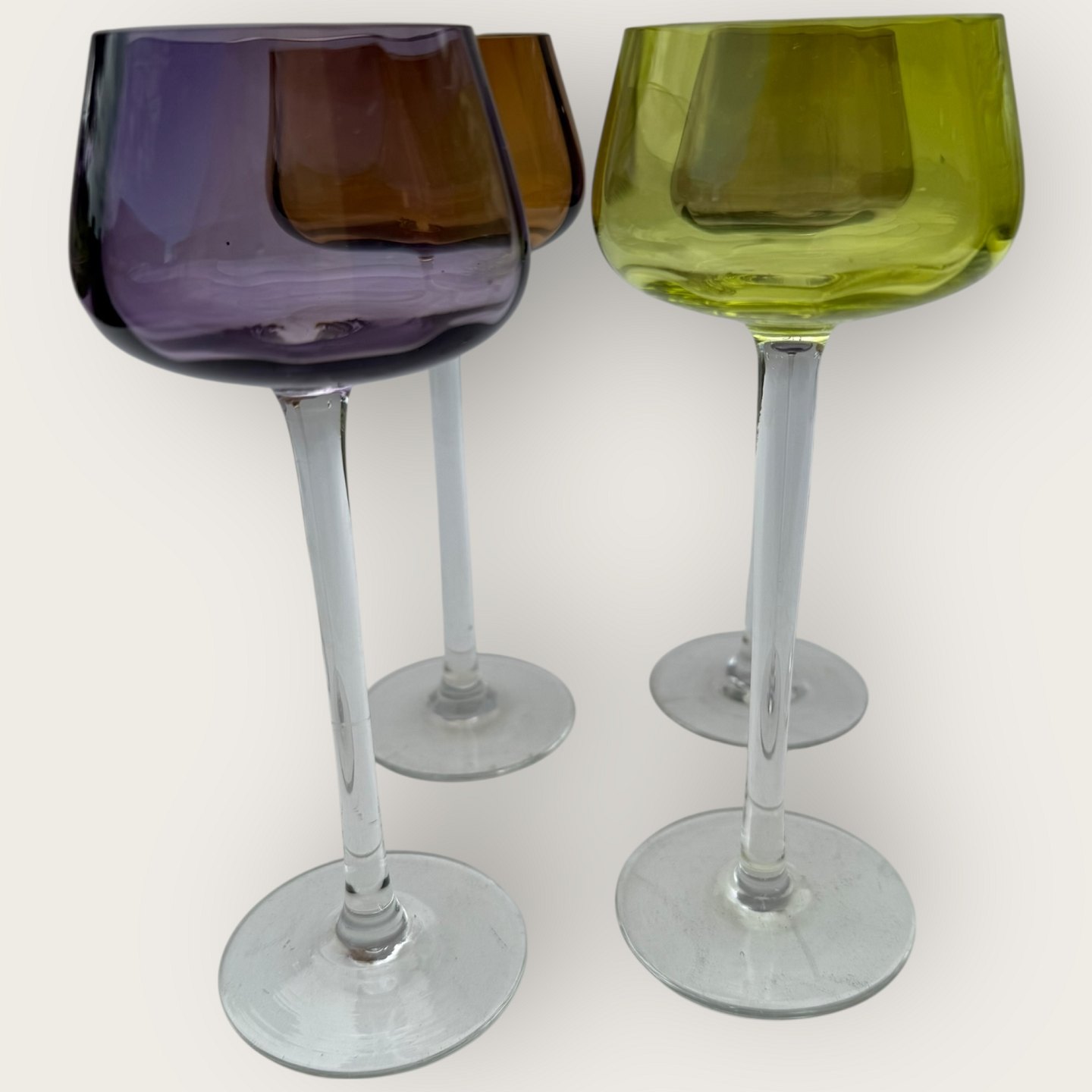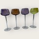 4 farbige Weingläser mit hohem Stiel, Höhe 19 cm, guter Zustand, zusammen verkauft.