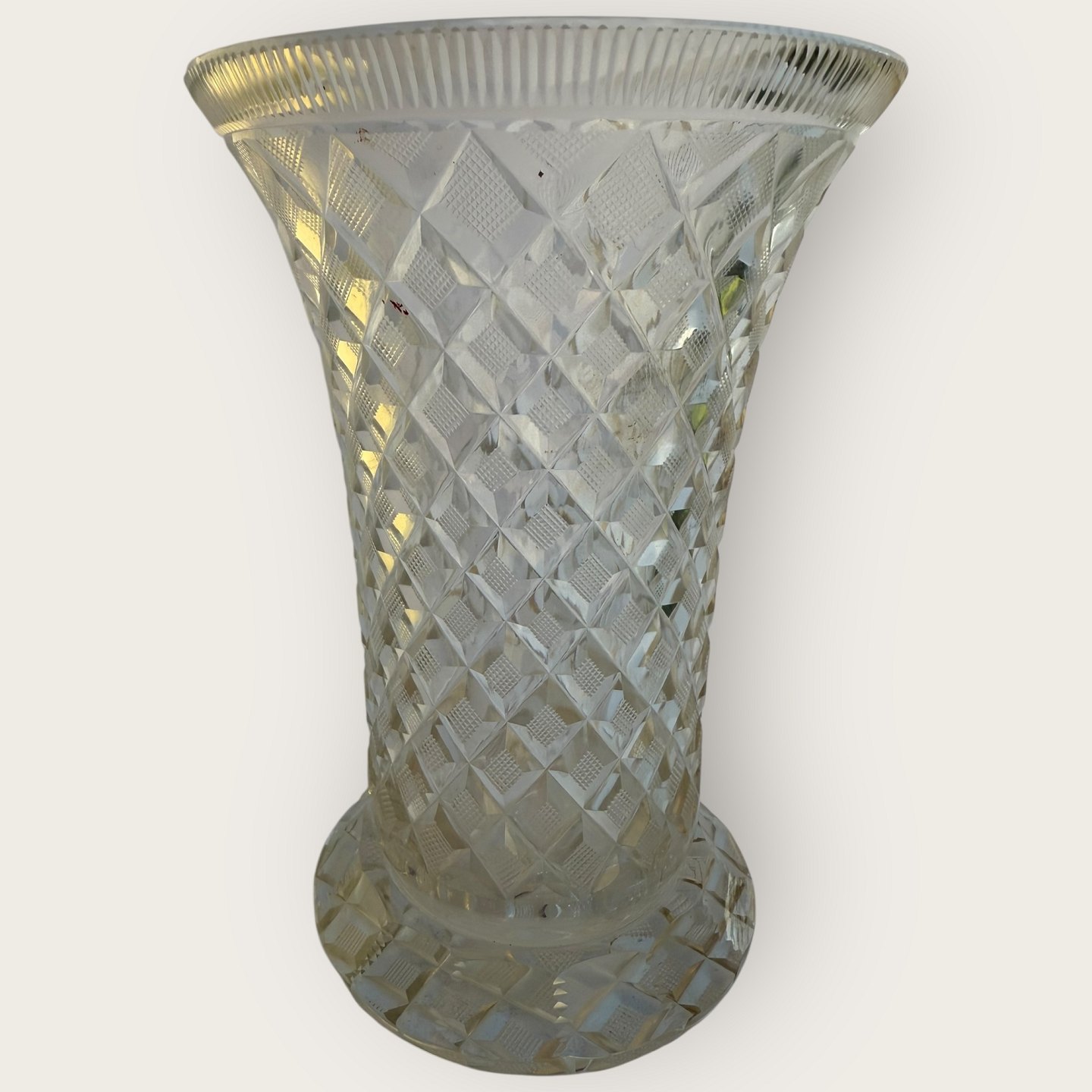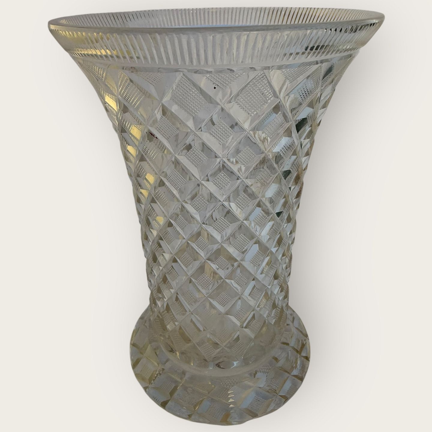 Große Kristallvase mit vielen Schliffen in sehr schönem Zustand, Höhe 21,5cm, Durchmesser 14,5cm
