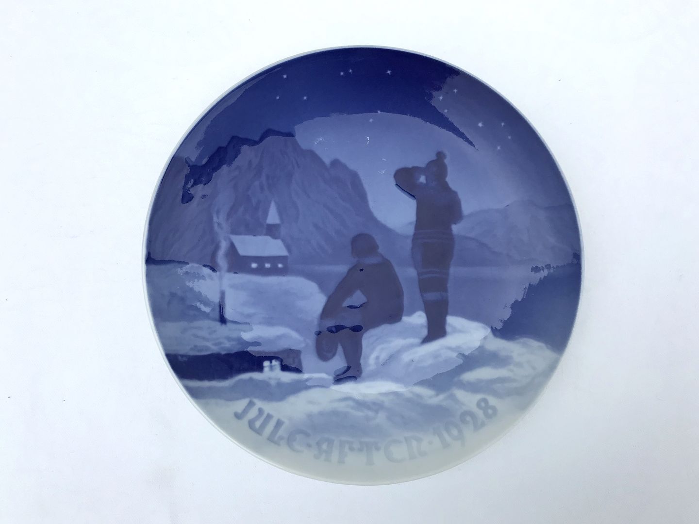 Bing & Grøndahl, Juleplatte, 1928, Grønlændere ved landsbykirke, 18cm i diameter, Design Johannes Achton Friis *Perfekt stand*