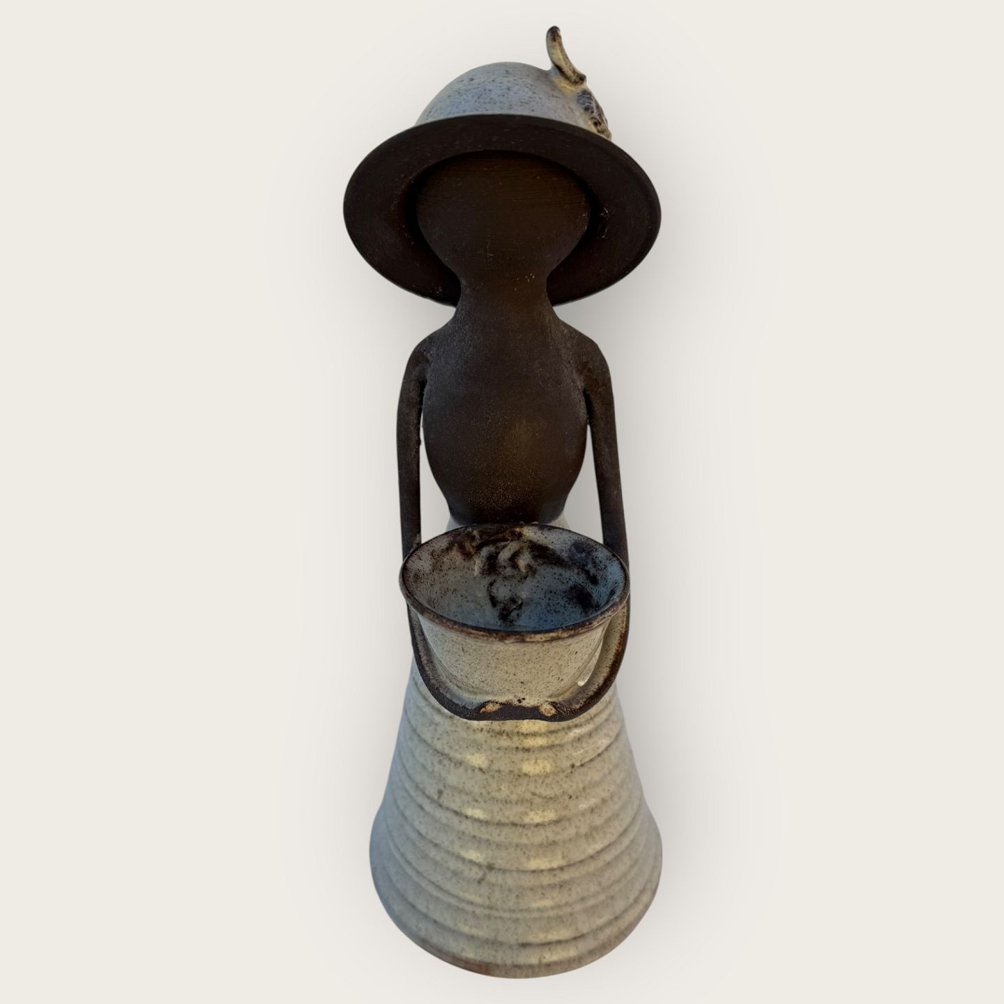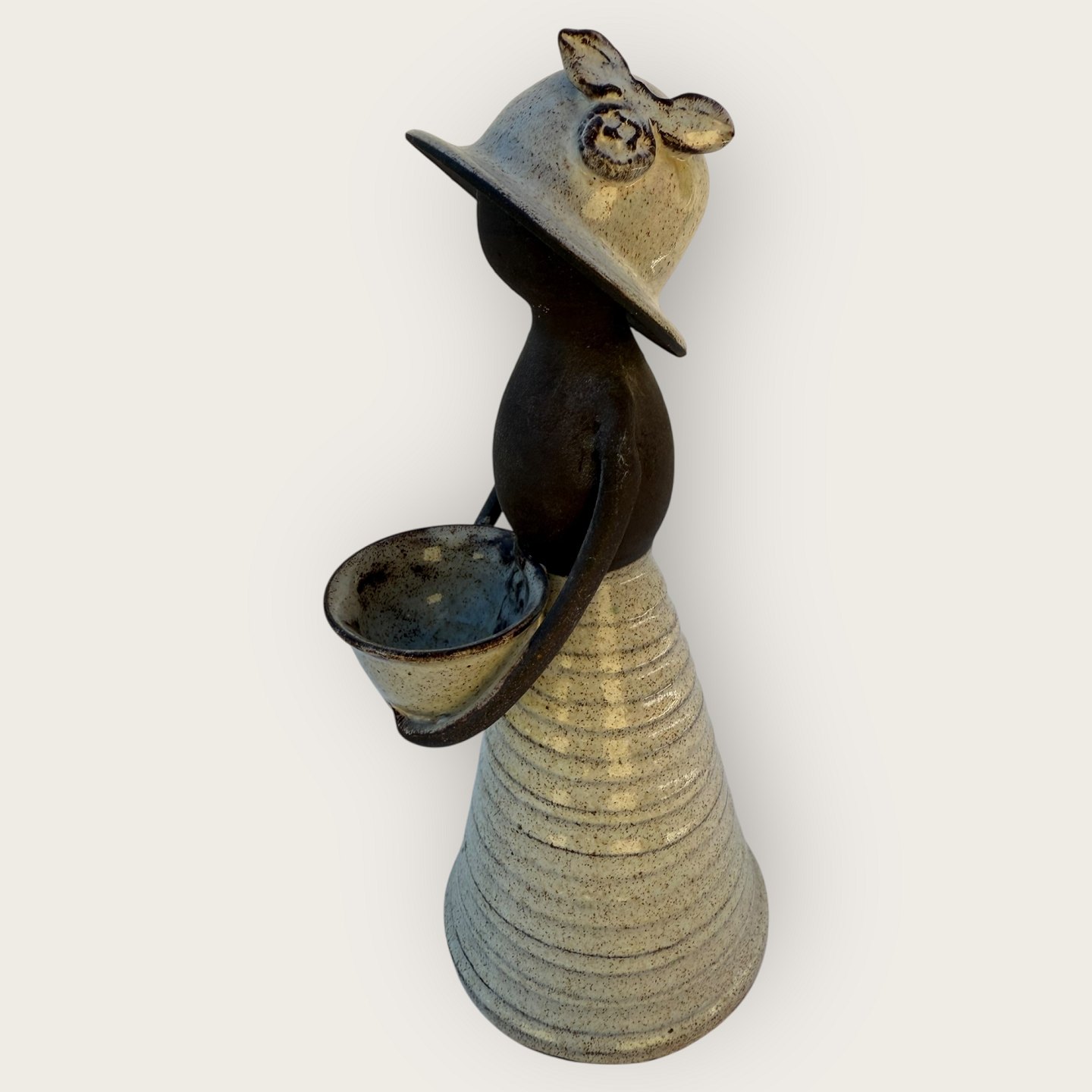 Keramik figur, kvinde med hat, Højde ca. 25cm, Mærket Hcllc keramik Roskilde, pæn stand