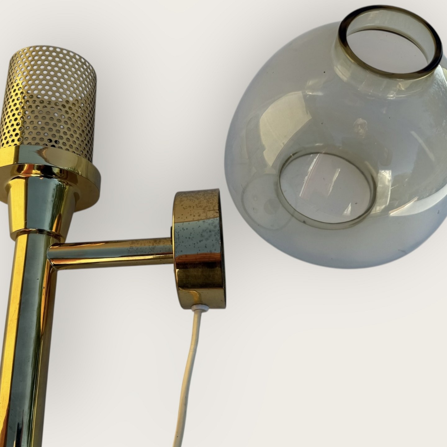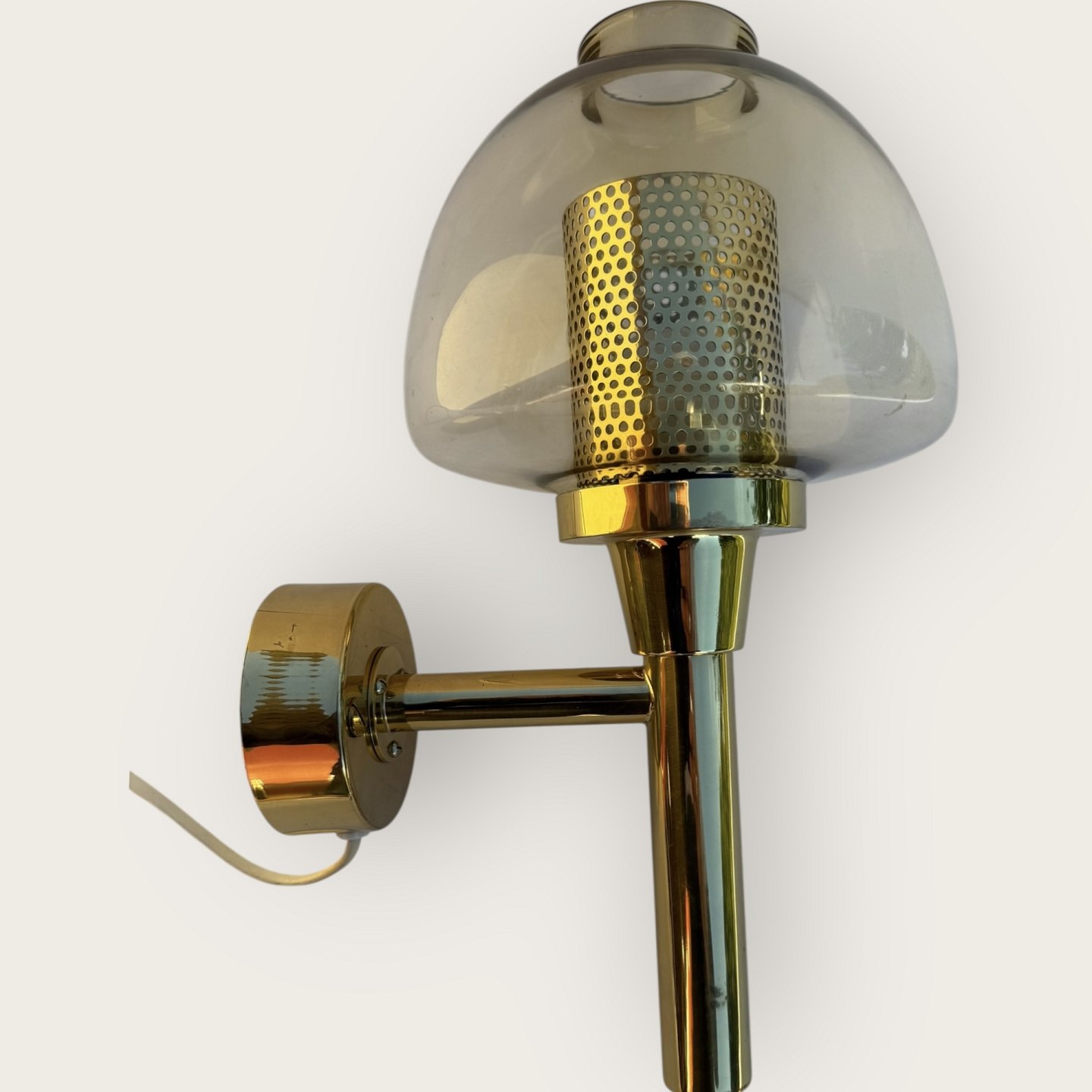 Hans Agne Jakobsson, # 314, væglampe, messing og glas, Højde ca 32cm, meget lille sprække/patinering på vægbeslaget (se foto) ellers rigtig flot stand.