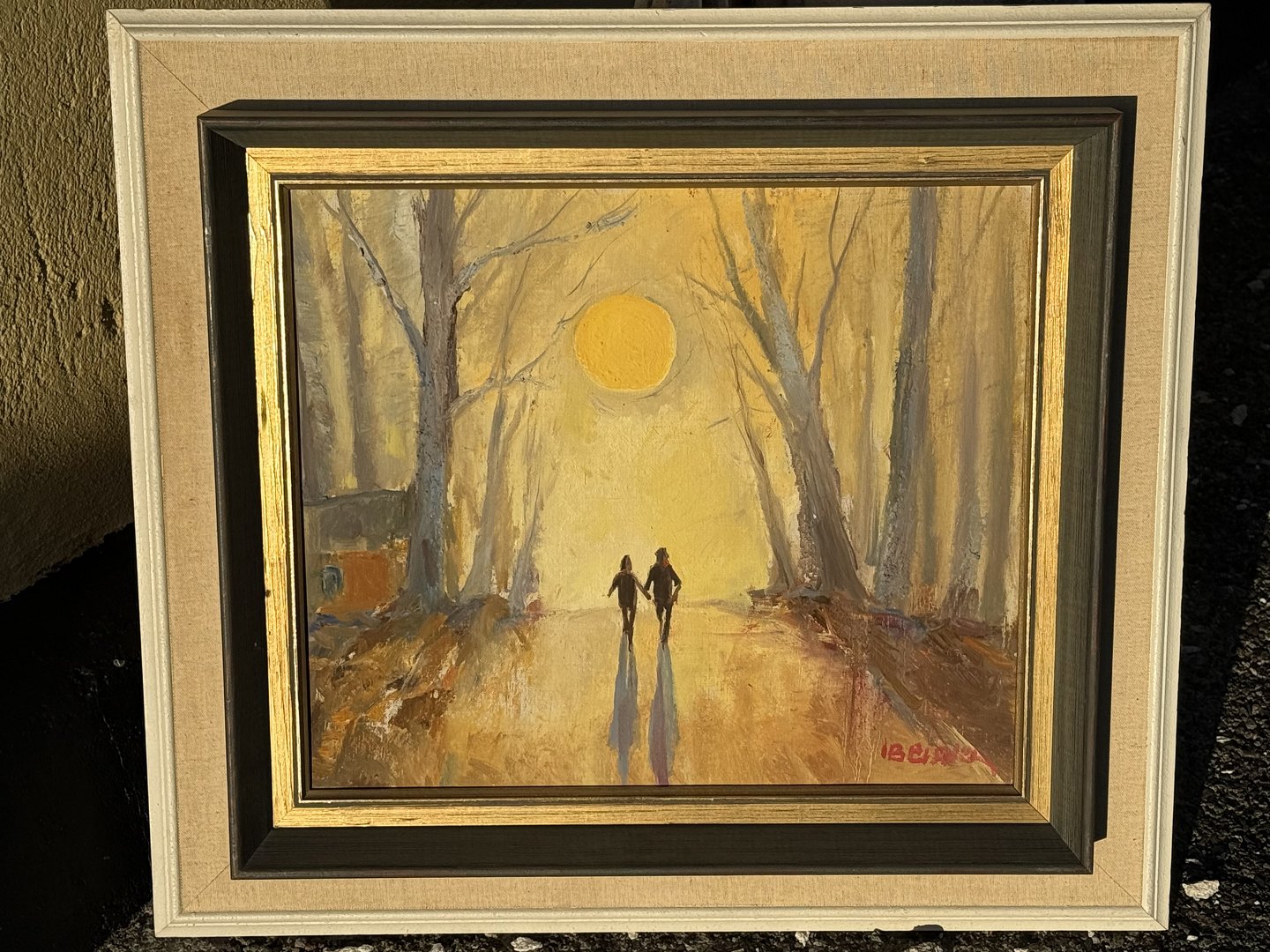 Ib Eisner, The Boys in the Deer Park Winter Sun, Oil painting on canvas, 40x34cm without frame, 59x53cm with frame *Good condition*