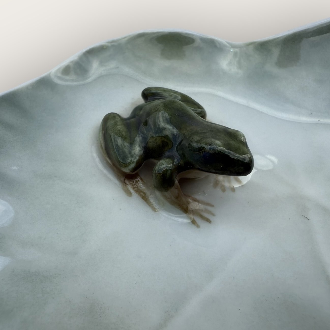 Royal Copenhagen, Grøn frø på blad, #2477, ca. 10x11cm, 1. sortering *fin stand*