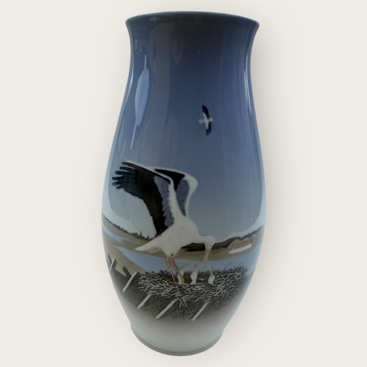 Bing & Grøndahl, Vase med Storkerede, # 1302/6250, højde 21cm, 1. sortering, fin stand.