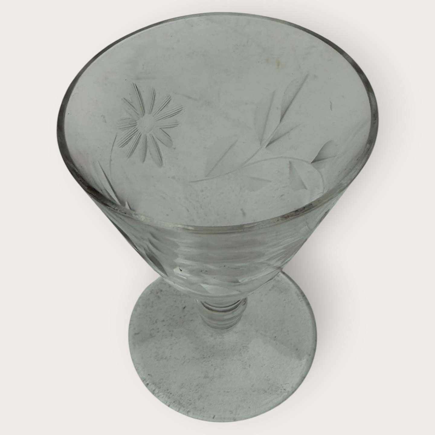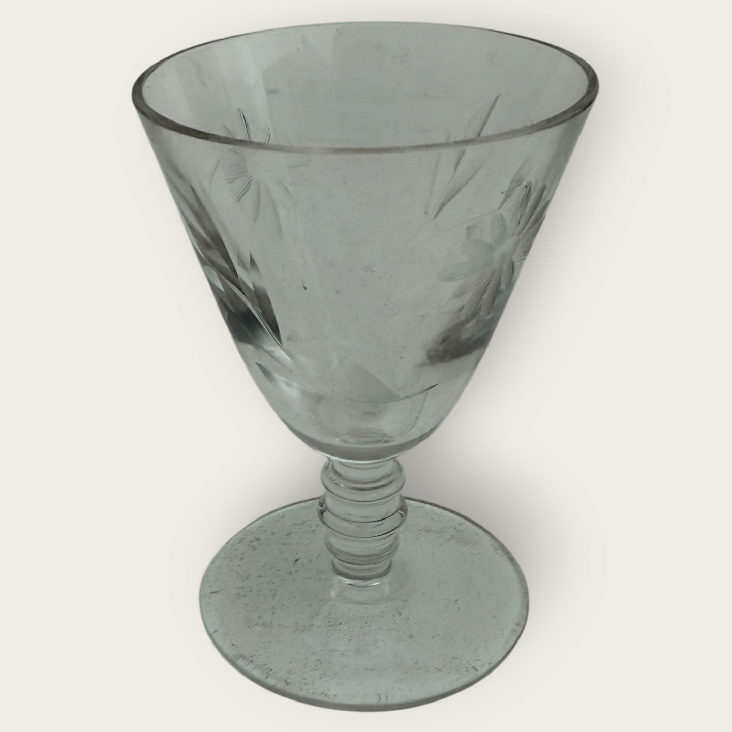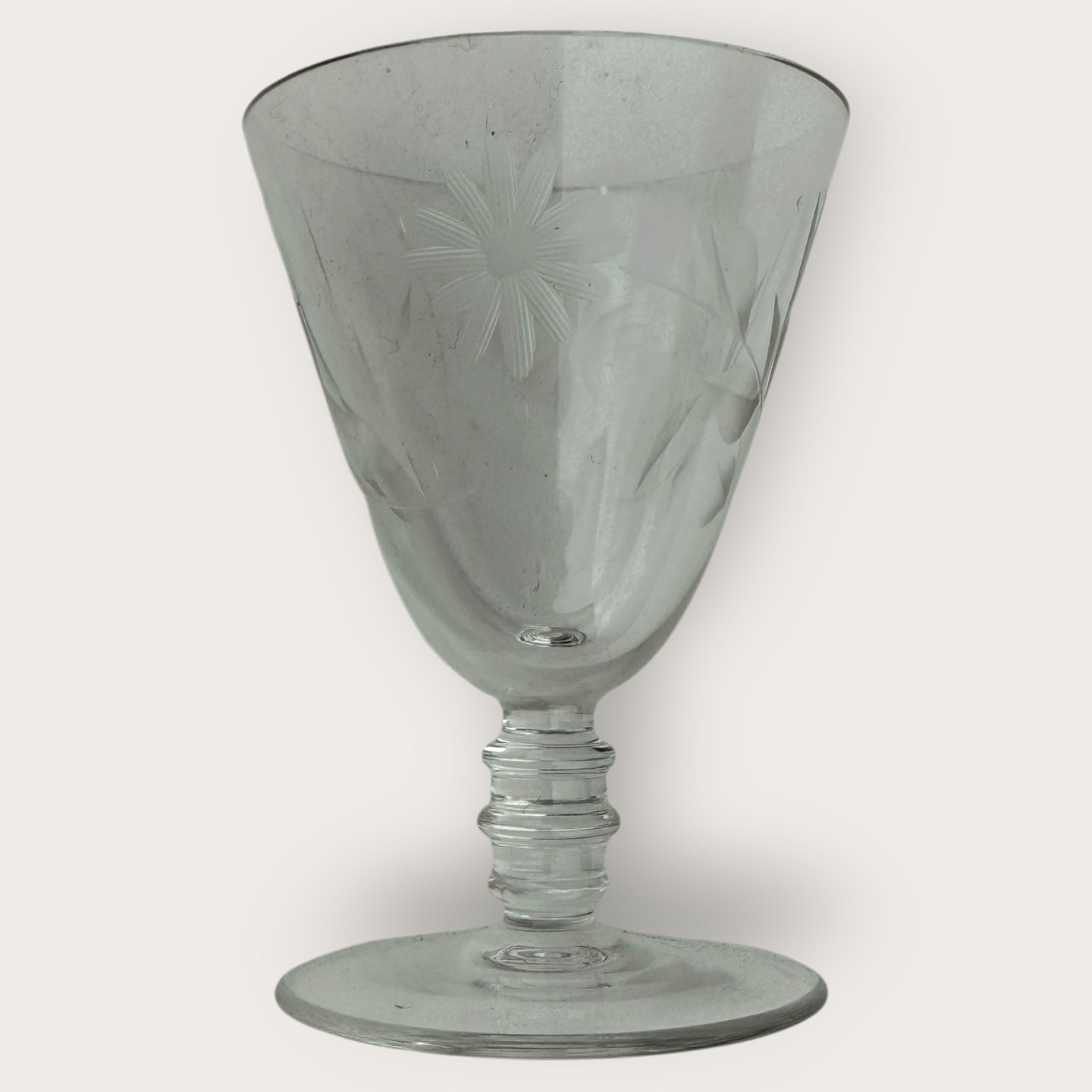 Portvinsglas med blomsterslibninger, 8cm højt, 6cm i diameter *pæn stand*