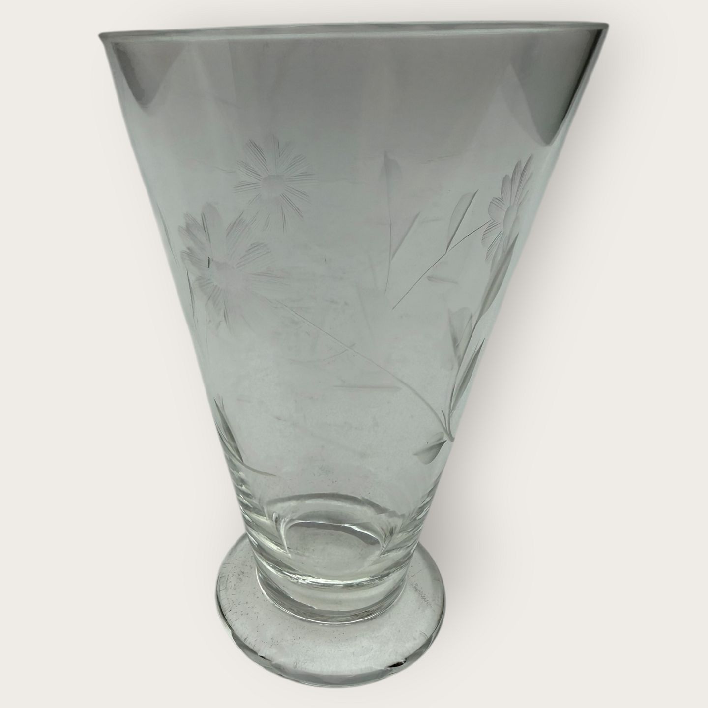 Vand / ølglas med blomsterslibninger, Højde 13,5cm, diameter 9cm *pæn stand*