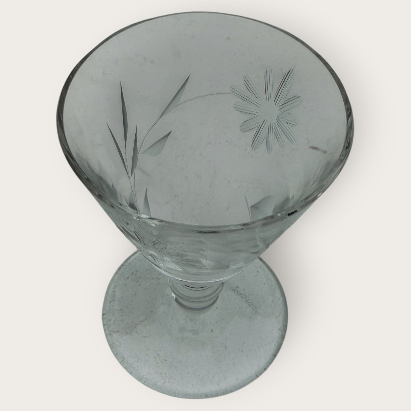 Snapseglas med blomsterslibninger, Højde 6,5cm, diameter 4,5cm *pæn stand*