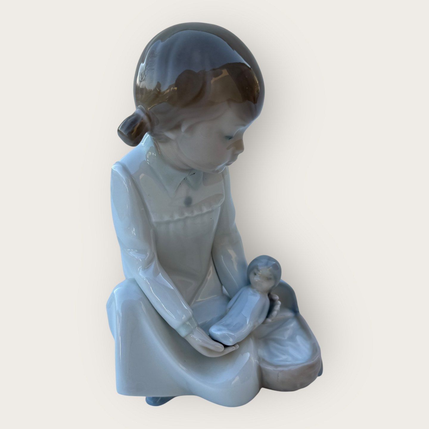 Zaphir, Lladro, Spanien, figur af pige med dukke, Højde 15,5cm *pæn stand*