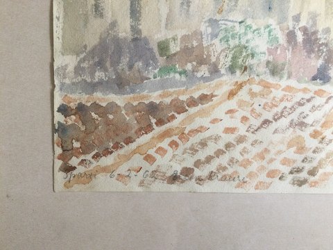 Ellen Krause Rørup (1905-90): Parti fra Sparta 1962. Akvarel på papir. Sign.: Ellen Krause Betegnet - Sparta 6-2-62. Smuk guldramme 28x39 (43x52) 22625