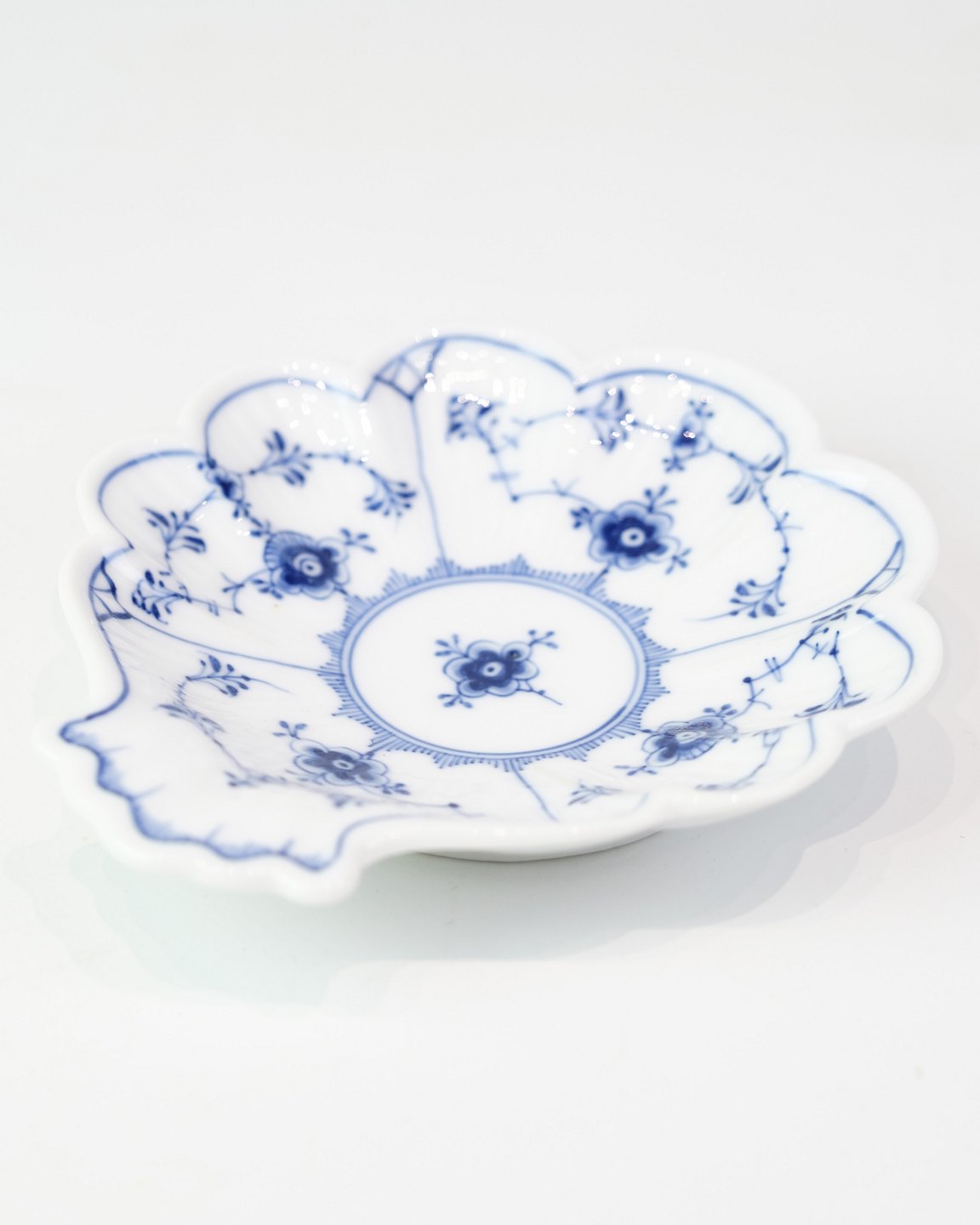 SoldThe dish in the classic blue-fluted pattern from Royal Copenhagen. This small serving bowl, model no. 2013, is hand-painted and dates from the period 1923–1935, which is confirmed by the stamp. The shape is slightly oval and has the characteristic blue-white porcelain.