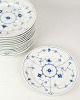 Middagstallerken nr. 025 fra Bing & Grøndahl. Fremstillet i porcelæn med klassisk blåmalet musselmalet dekoration.