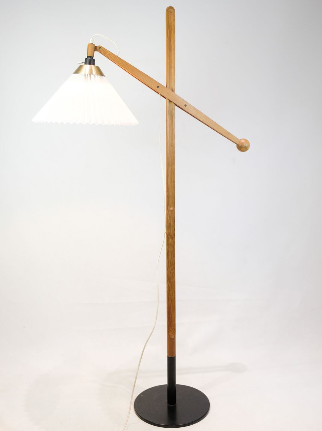 Floor lamp, model 325 by Le Klint, designed by Vilhelm Wohlert in teak with original shade from around the 1950s, Denmark. It is a rather sought-after floor lamp, due to its age and good condition.