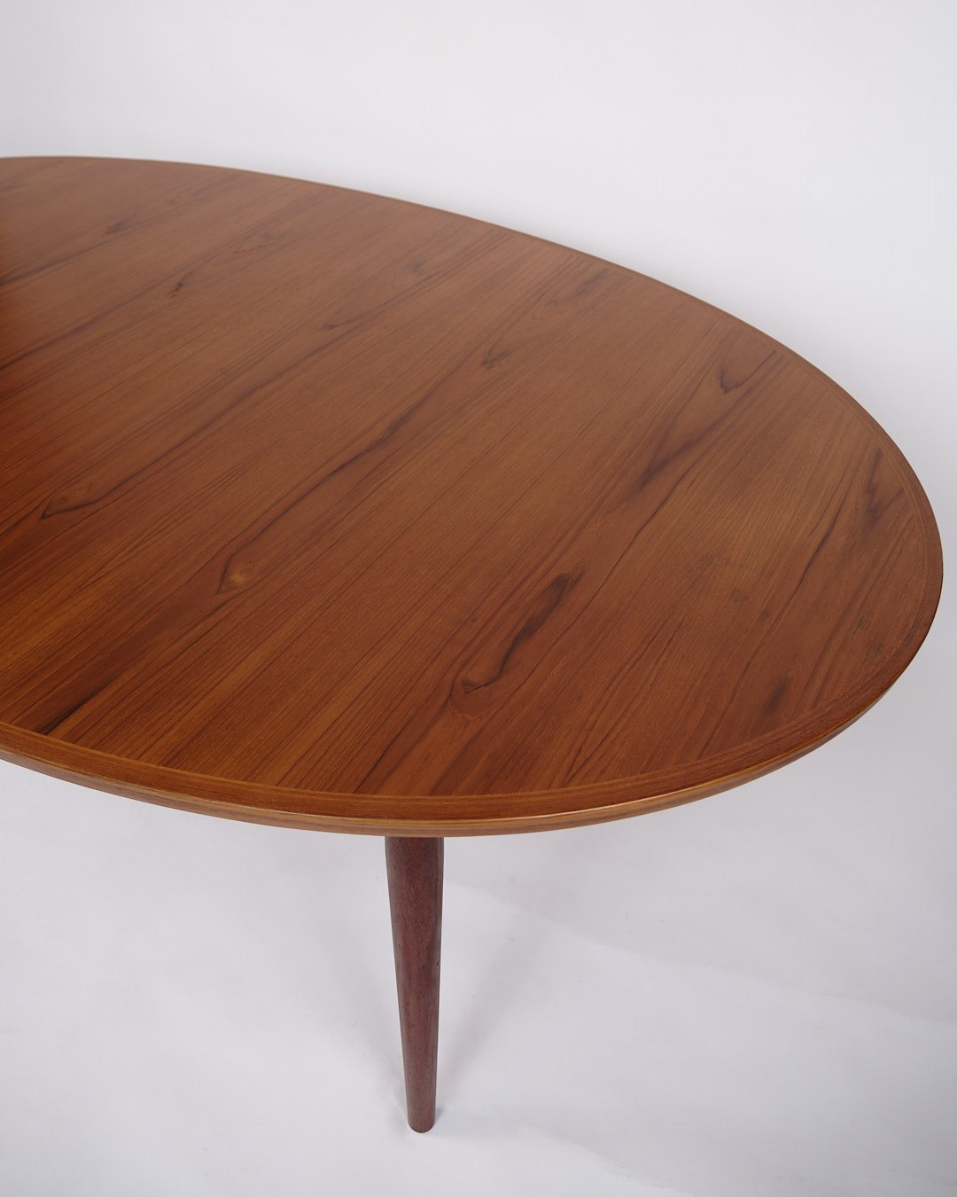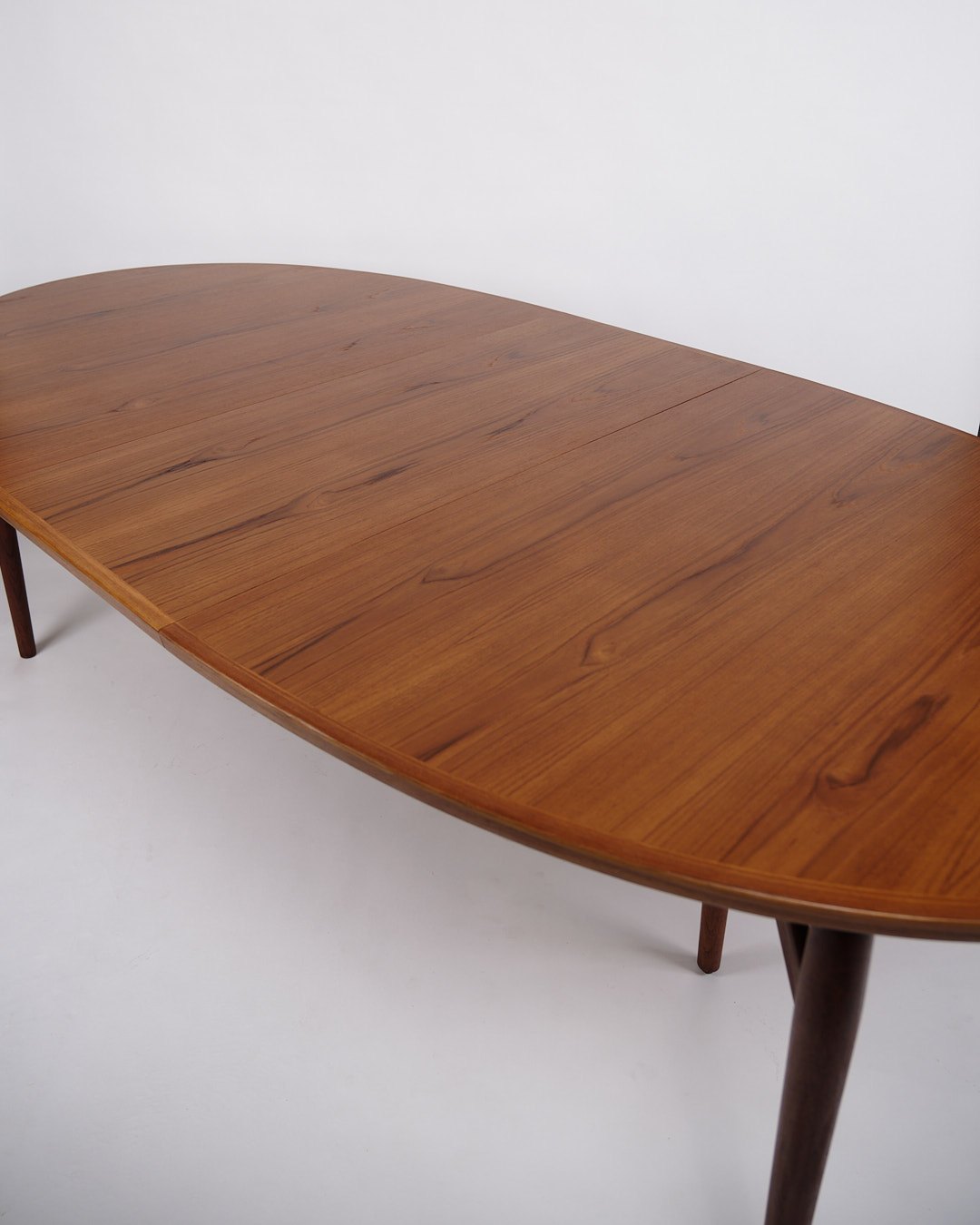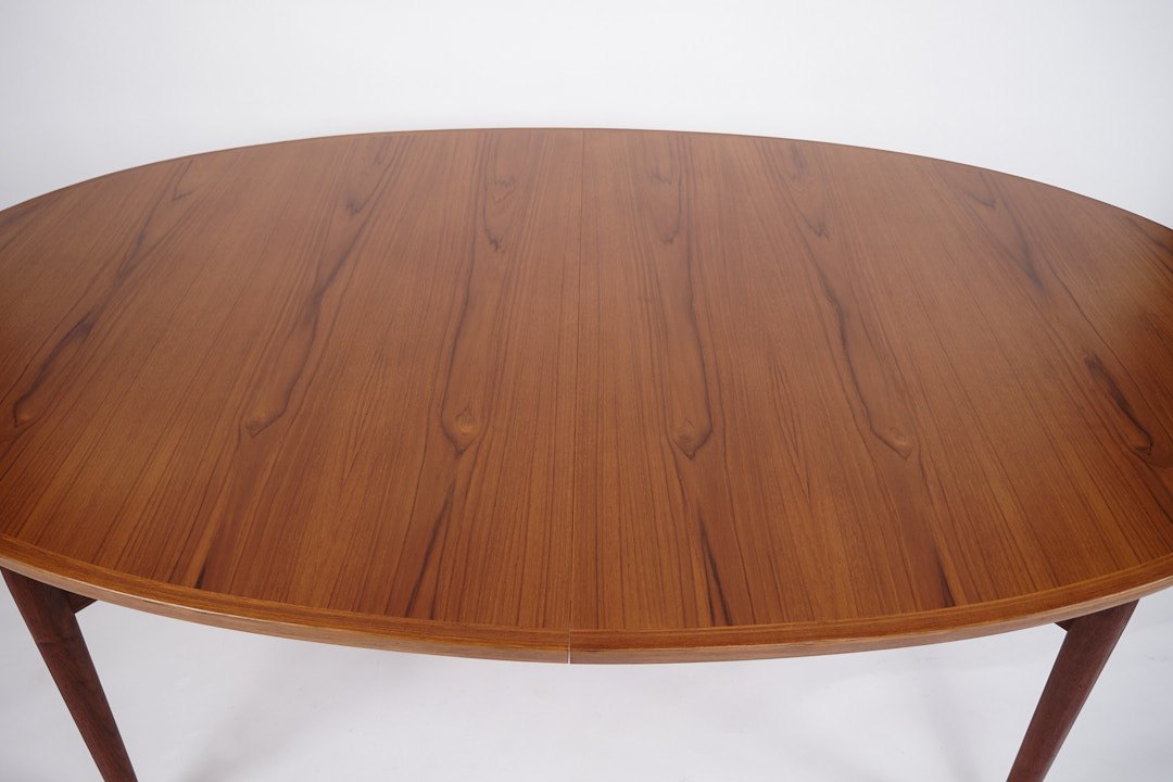 Please contact us for price informationLarge oval dining table designed by Arne Vodder and produced by Sibast Møbelfabrik in the 1960s. The table is made of teak and 2 extension leaves of 50cm are included with the table.