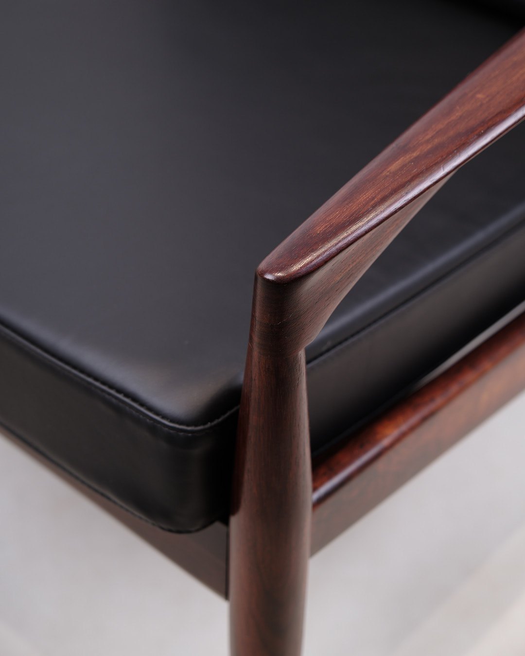 Kontakt os vedrørende prisKai Kristiansen “Papirknivstolen”, model 121. Palisander og sort læder. Produceret af Magnus Olesen, 1950’erne.