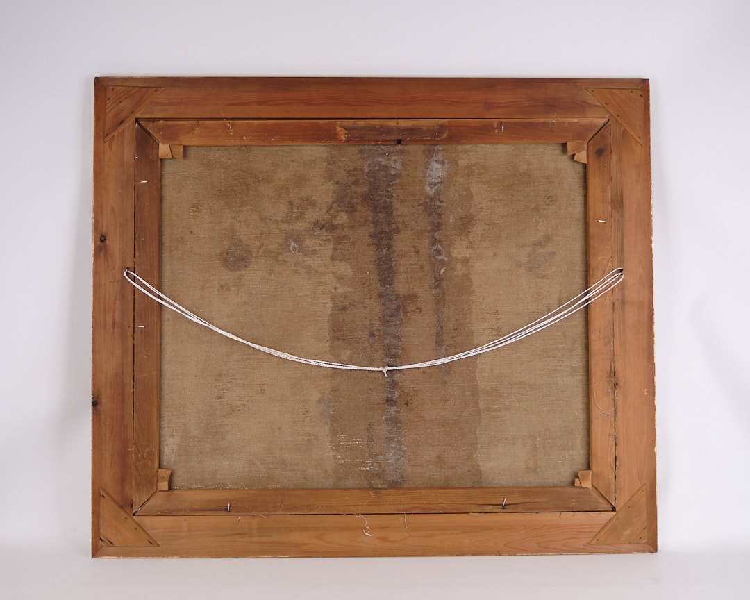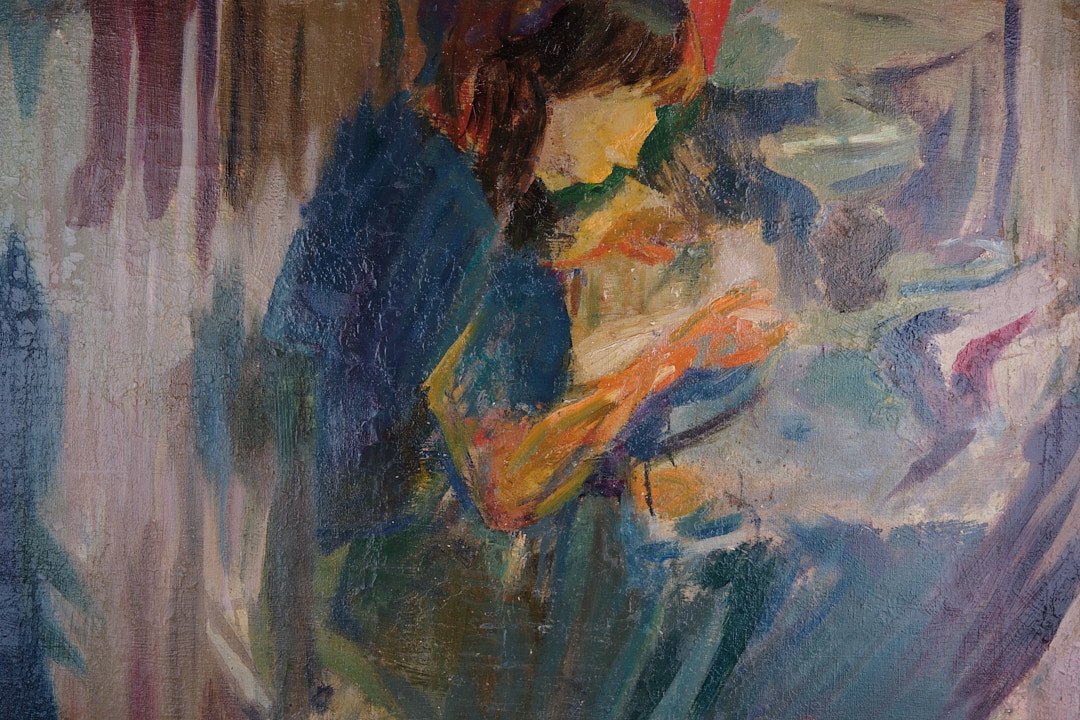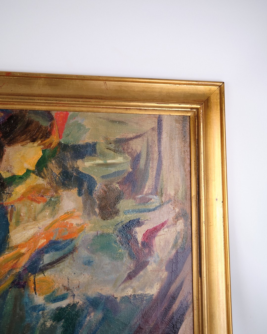 SolgtAbstrakt oliemaleri af kvinde fra 1930’erne. Olie på lærred med guldramme.