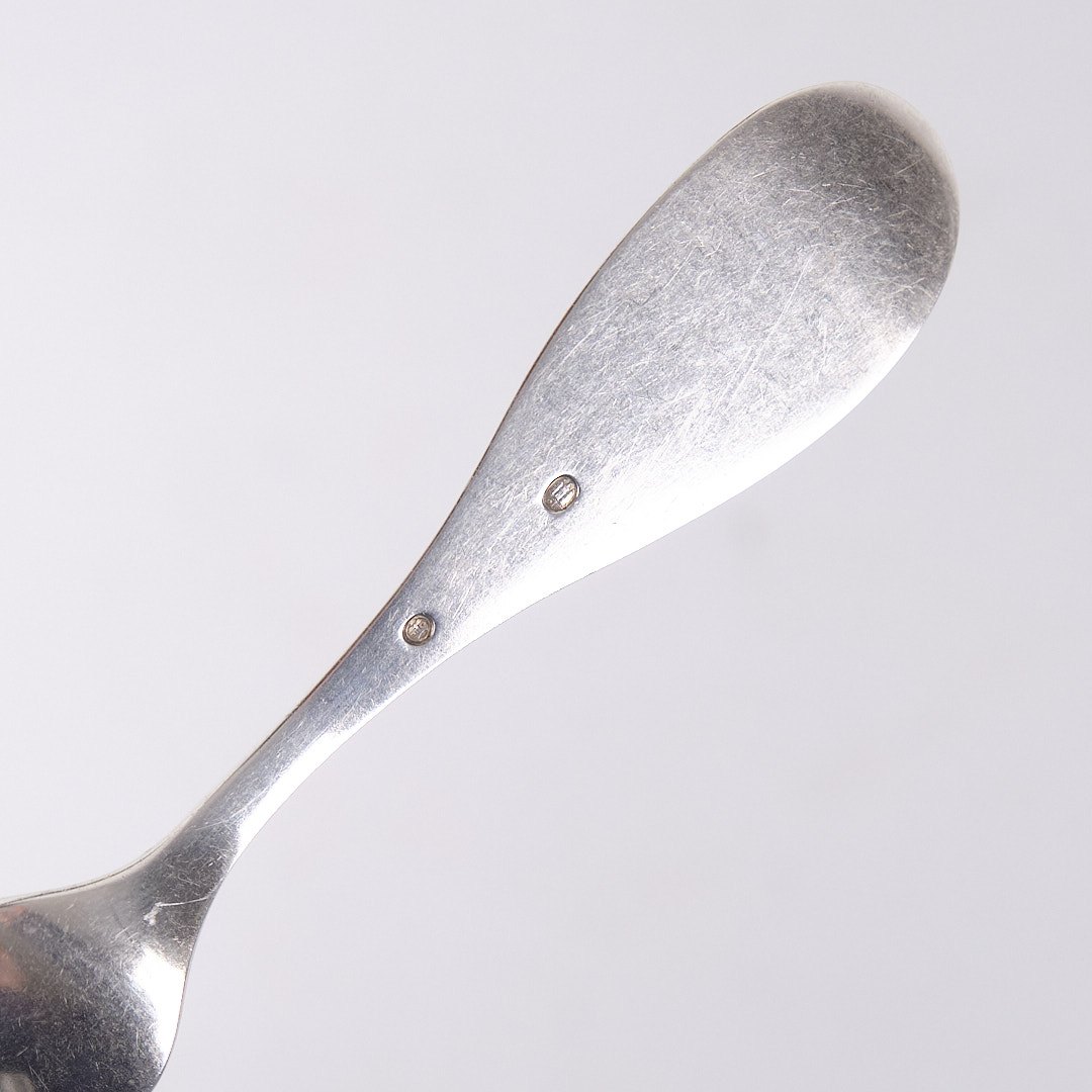 Barnegaffel i tretårnet sølv med motiv af “Den Lille Rødhætte”. Stemplet. Klassisk dansk sølvdesign.