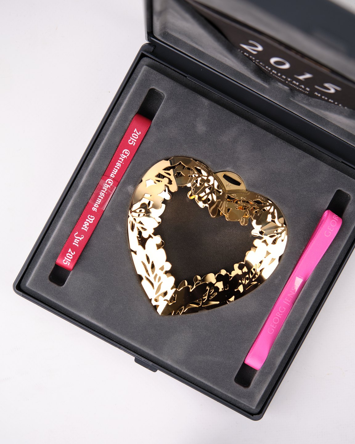 SoldGeorg Jensen Christmas Euro 2015. Heart plated with 24 kt. gold. H: 9 cm, W: 9 cm. Classic Danish Christmas decoration and collector's item.