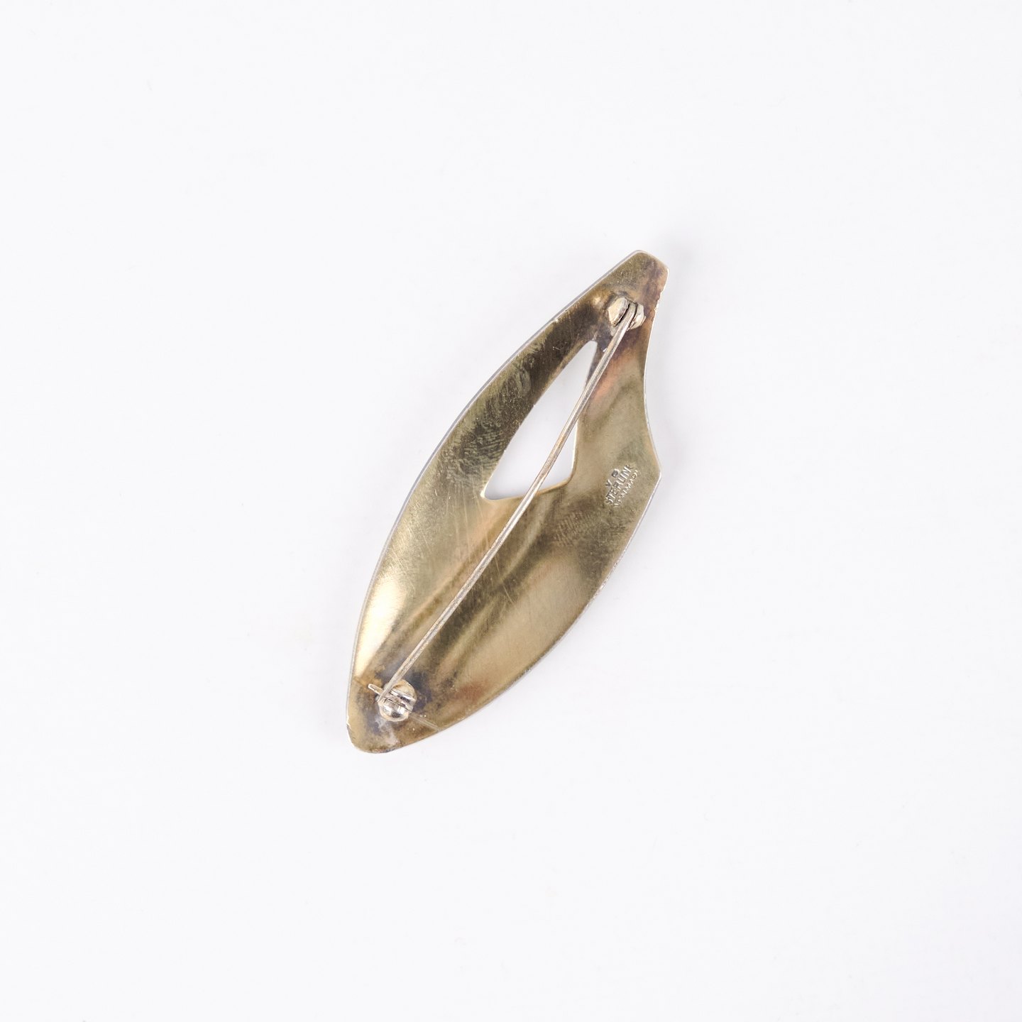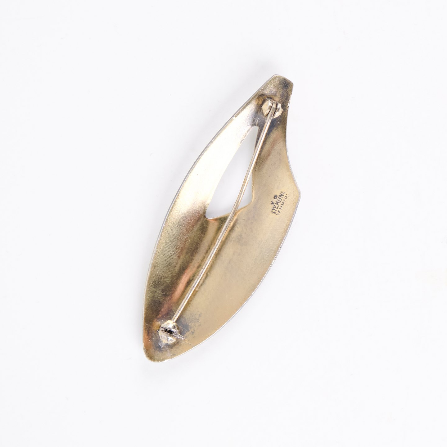 Elegant broche i sterling sølv med hvid emalje, stemplet V.R Sterling Denmark. Det fine, rene udtryk og det klassiske håndværk gør smykket velegnet som både samlerobjekt og tidløs accessory. Et kvalitetsstykke med enkel skandinavisk æstetik.