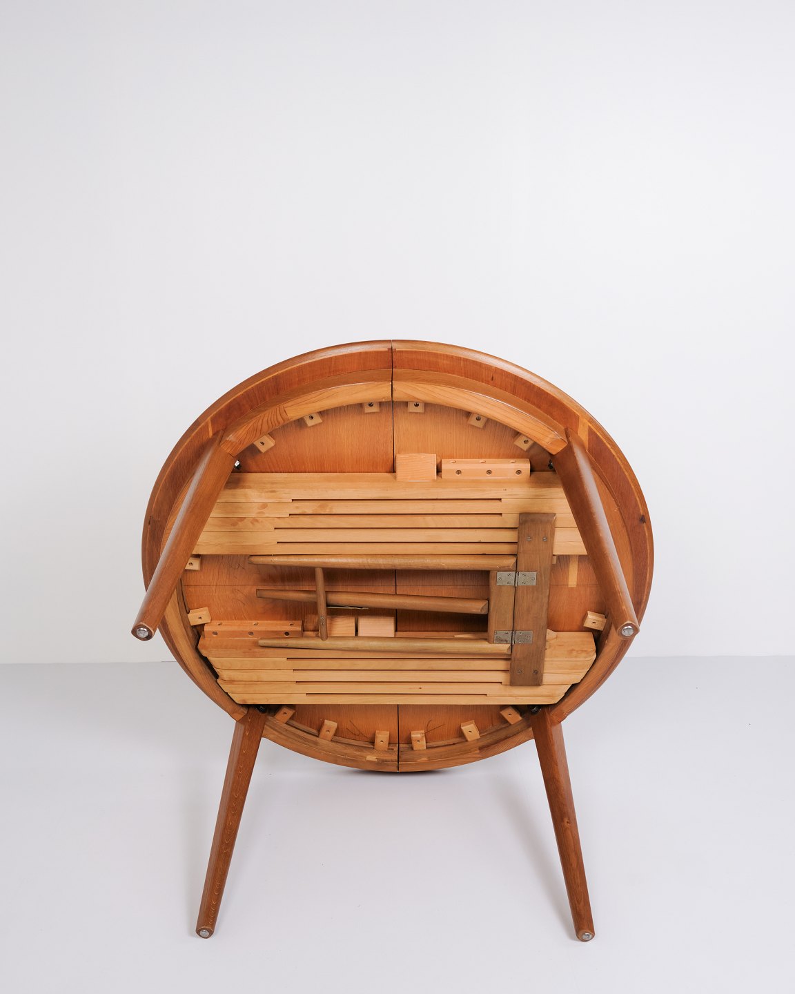 Round oak dining table from the 1960s. Danish design in a classic style.