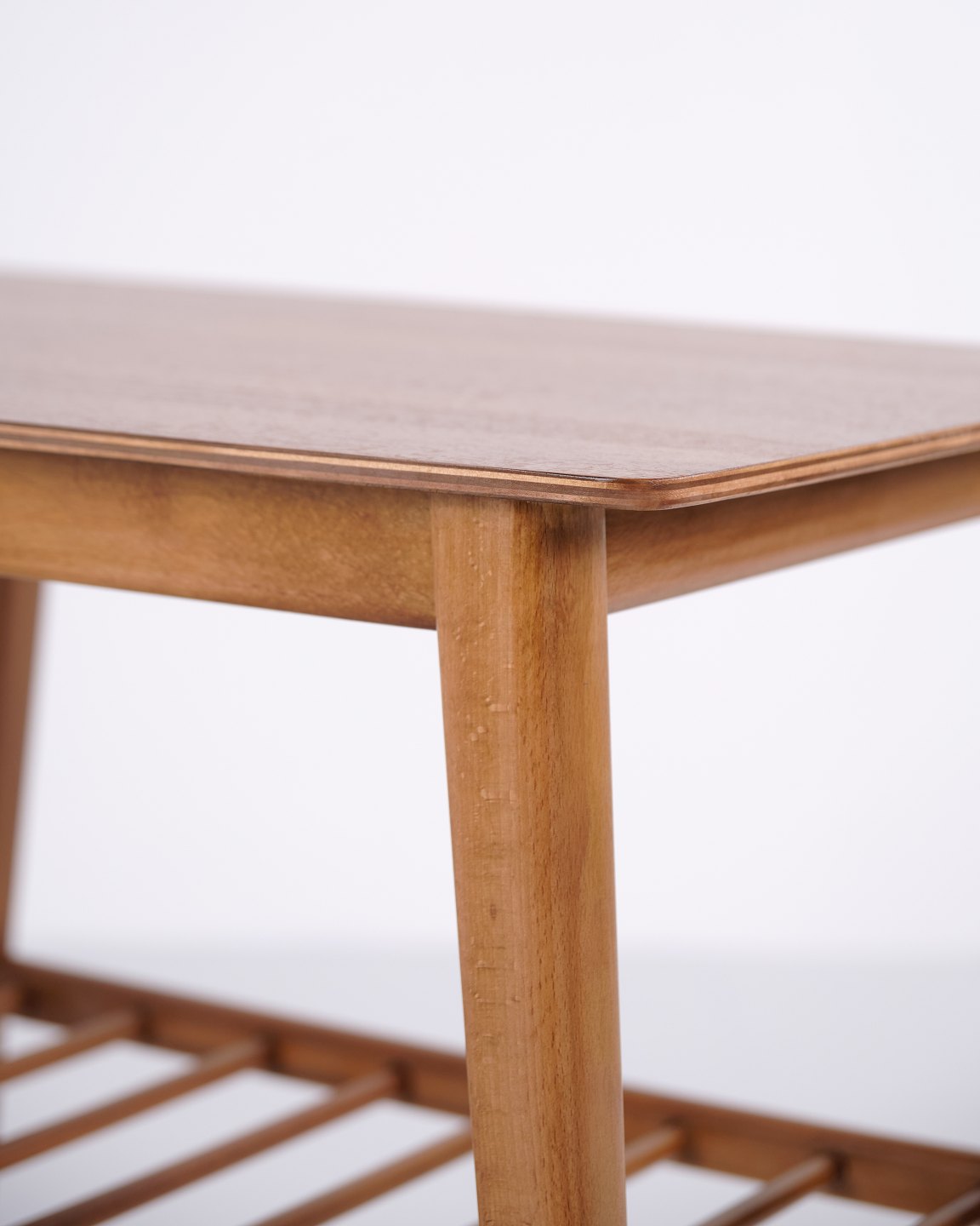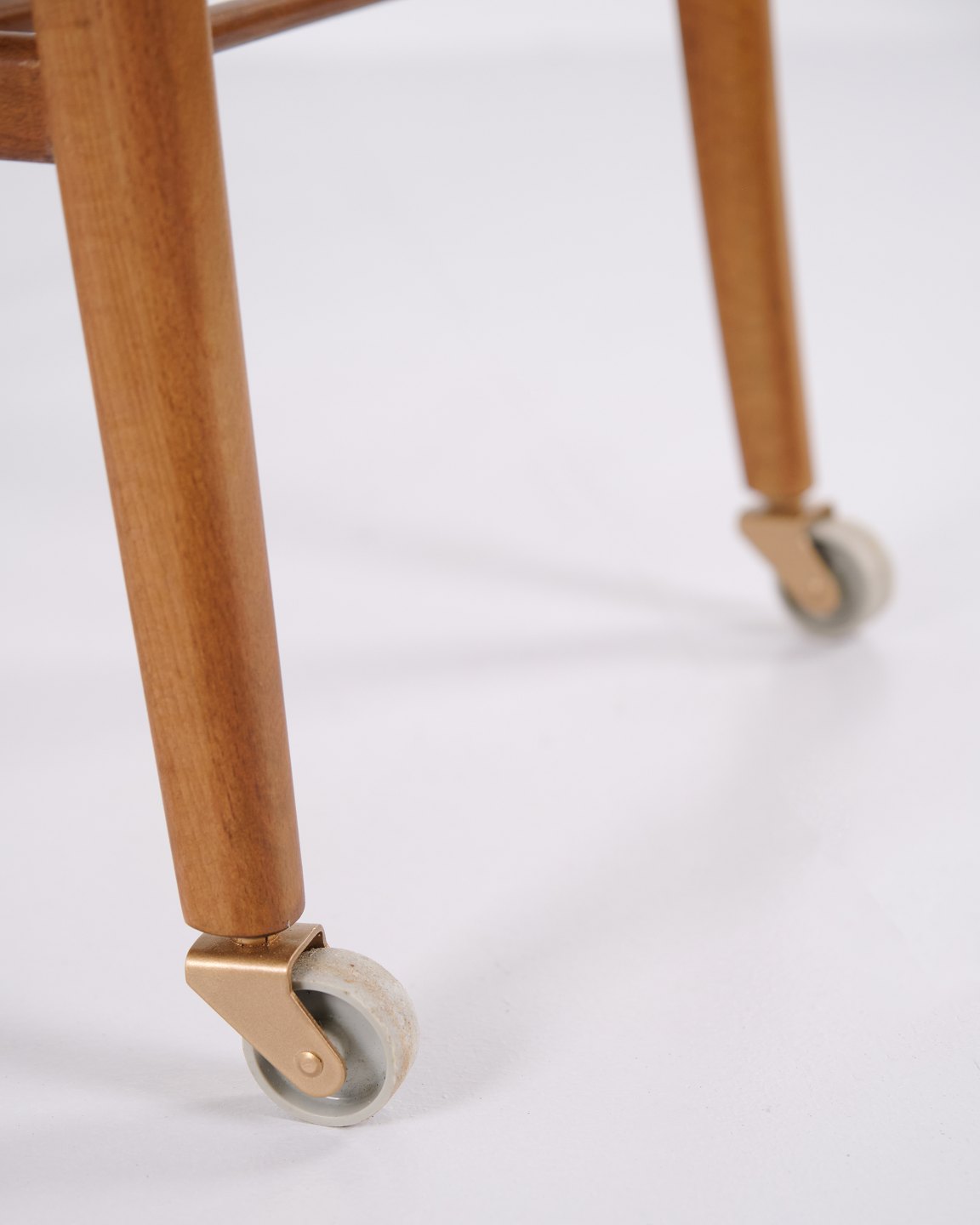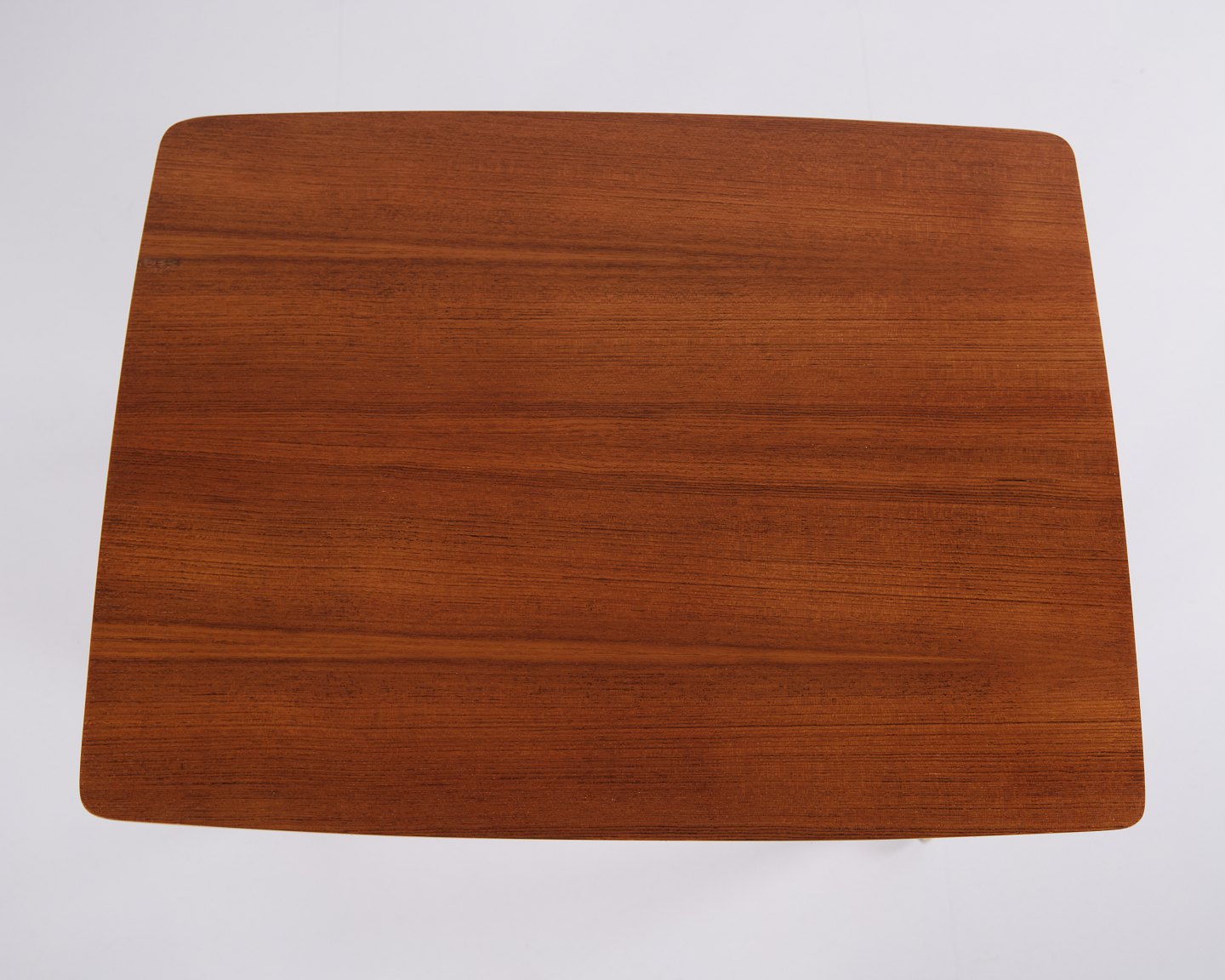 Sidebord fra 1960’erne i teaktræ med hylde og hjul. Klassisk dansk design.