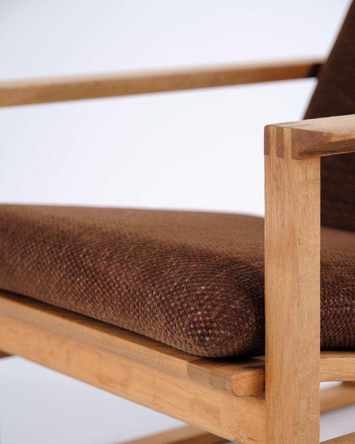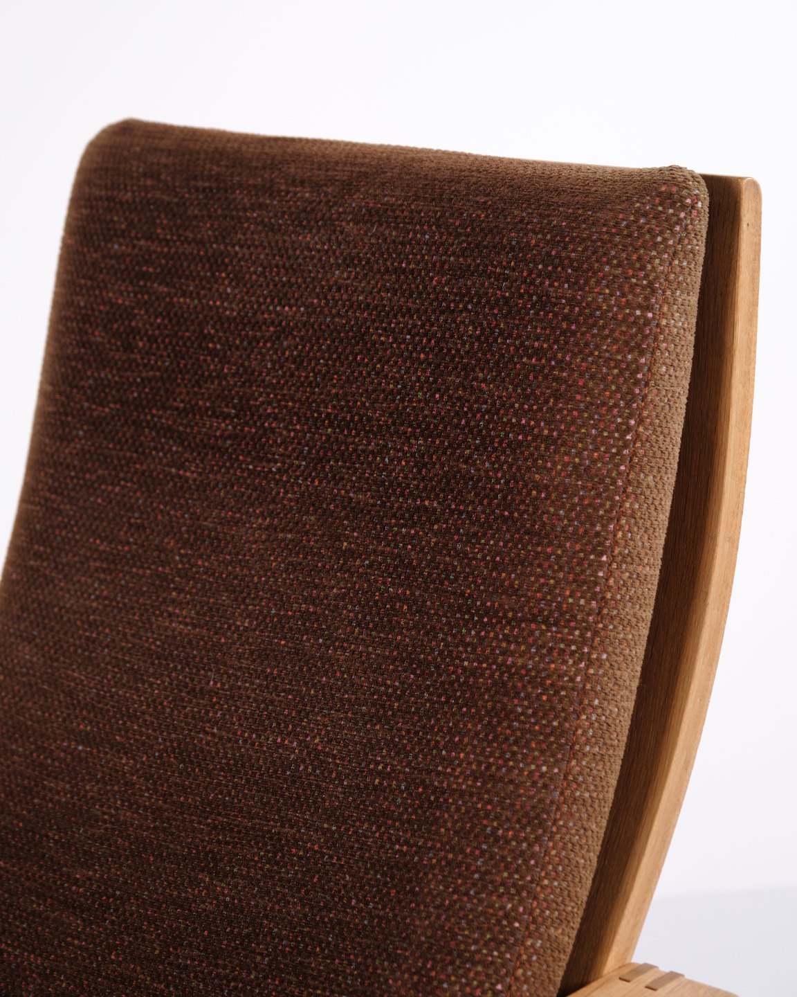 Børge Mogensen slædestol BM2254 fra Fredericia Stolefabrik. Egetræ med brune hynder.