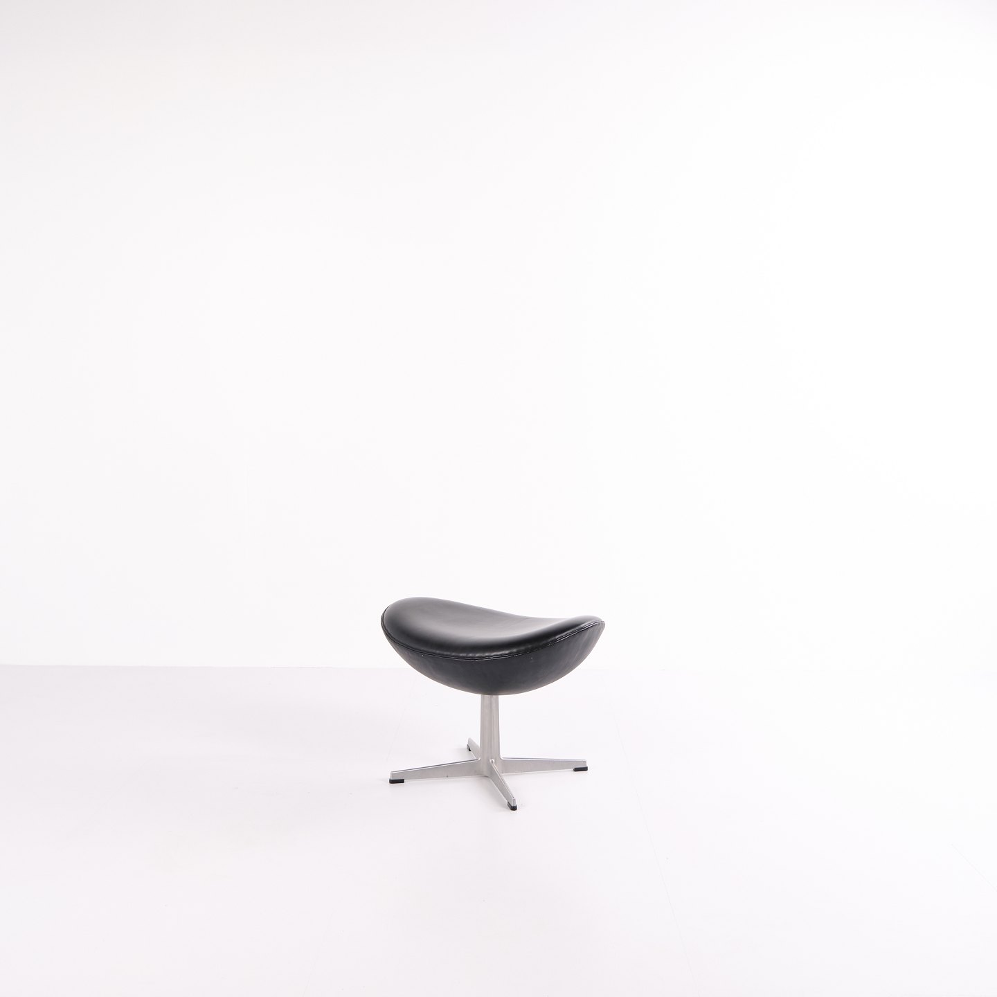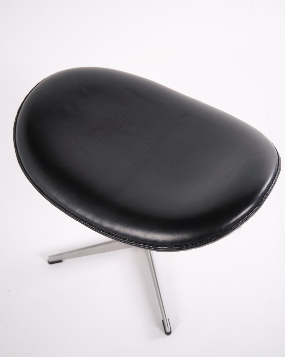 Skammel til Ægget, designet af Arne Jacobsen og produceret af Fritz Hansen i 2006. Betrukket med sort Elegance læder og monteret på aluminium stjernefod — samme høje kvalitet og opmærksomhed på detaljer som på originalmodellen. En diskret og solid tilføjelse, der gør stolen komplet og fuldender den elegante helhed.