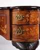 — Materiale: Nøddetræ med frugttræ intarsia, shellakpoleret