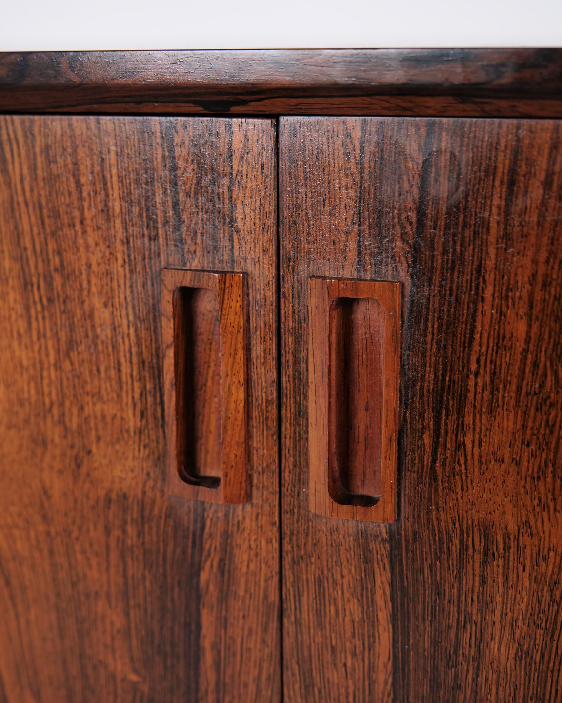 Skab designet af Johannes Sorth og fremstillet hos Bornholm Møbelfabrik i Danmark i midten af det 20. århundrede. Møblet er udført i palisander og fremstår med de rene linjer og den høje håndværksmæssige kvalitet, som kendetegner dansk møbeldesign fra perioden.