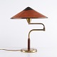 LYFA bordlampe fra 1930/40’erne i patineret messing med svingarm og original ravfarvet skærm i svinehud. Klassisk dansk belysning.
