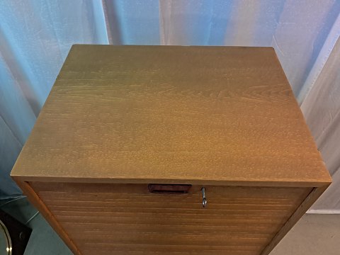 Jalousiskab i fineret egetræ, fra 1970erne.