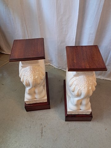 2 Pocelæns-elefanter med træsokkel og topplade, fra 2000erne.